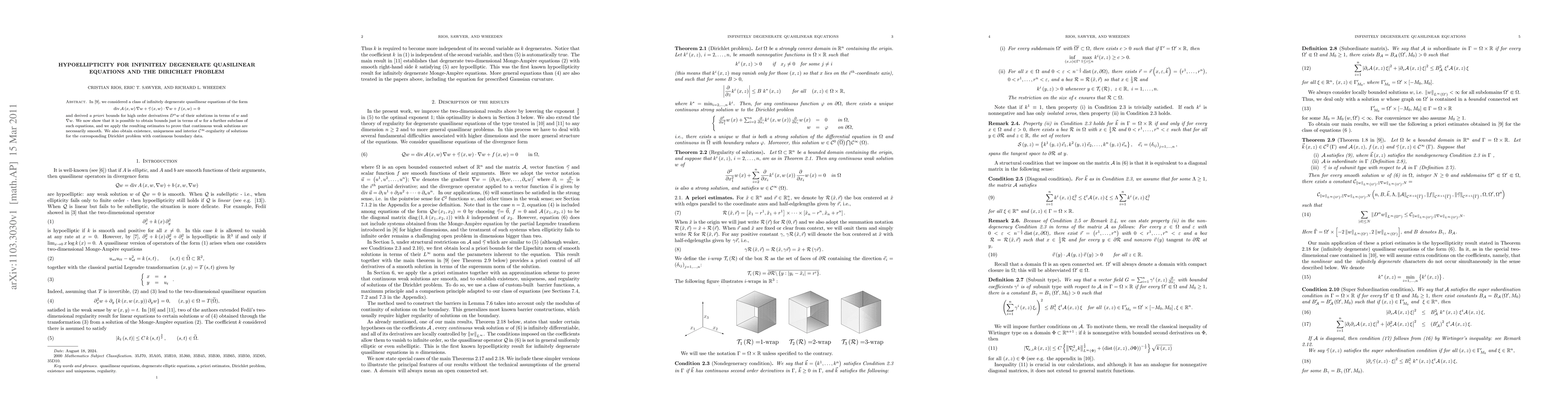 This paper demonstrates hypoellipticity for a subclass of infinitely degenerate quasilinear equations, proving that continuous weak solutions are smooth. It also establishes existence, uniqueness, and interior regularity for solutions to the Dirichlet problem with continuous boundary data.