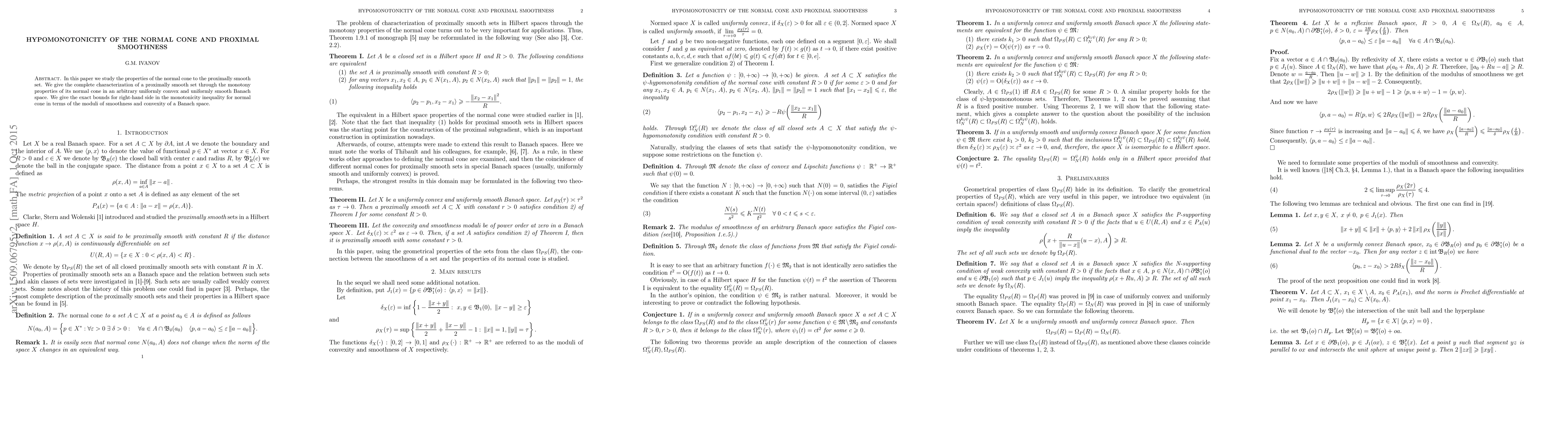 This paper characterizes proximally smooth sets in uniformly convex and smooth Banach spaces through the hypomonotonicity of their normal cones and provides precise bounds for the right-hand side in the monotonicity inequality based on the moduli of smoothness and convexity.