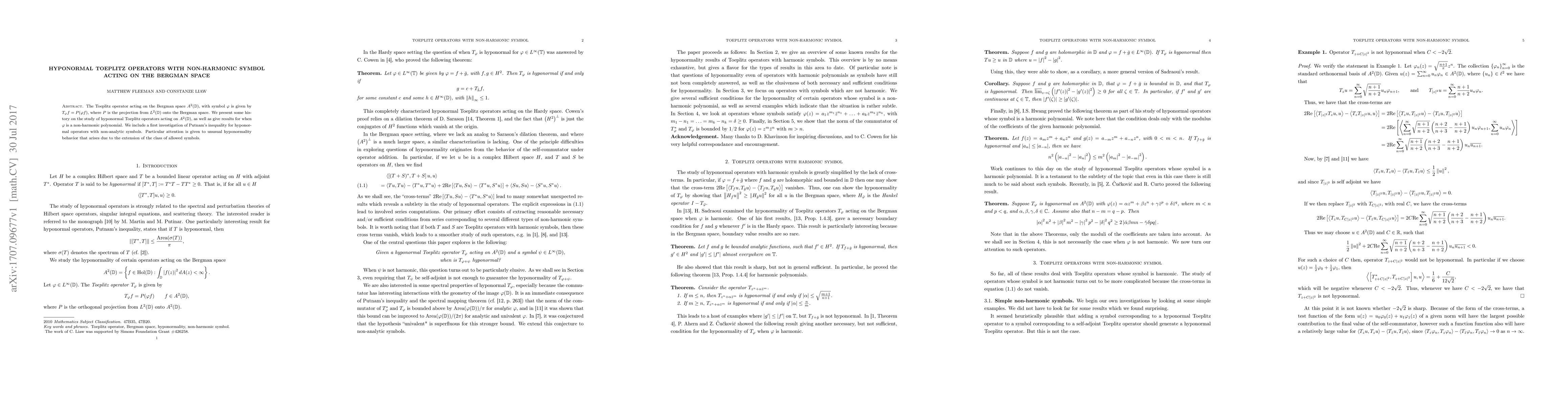 The Toeplitz operator acting on the Bergman space $A^{2}(\mathbb{D})$, with symbol $\varphi$ is given by $T_{\varphi}f=P(\varphi f)$, where $P$ is the projection from $L^{2}(\mathbb{D})$ onto the Bergman space. We present some history on the study of hyponormal Toeplitz operators acting on $A^{2}(\mathbb{D})$, as well as give results for when $\varphi$ is a non-harmonic polynomial. We include a first investigation of Putnam's inequality for hyponormal operators with non-analytic symbols. Particular attention is given to unusual hyponormality behavior that arises due to the extension of the class of allowed symbols.
