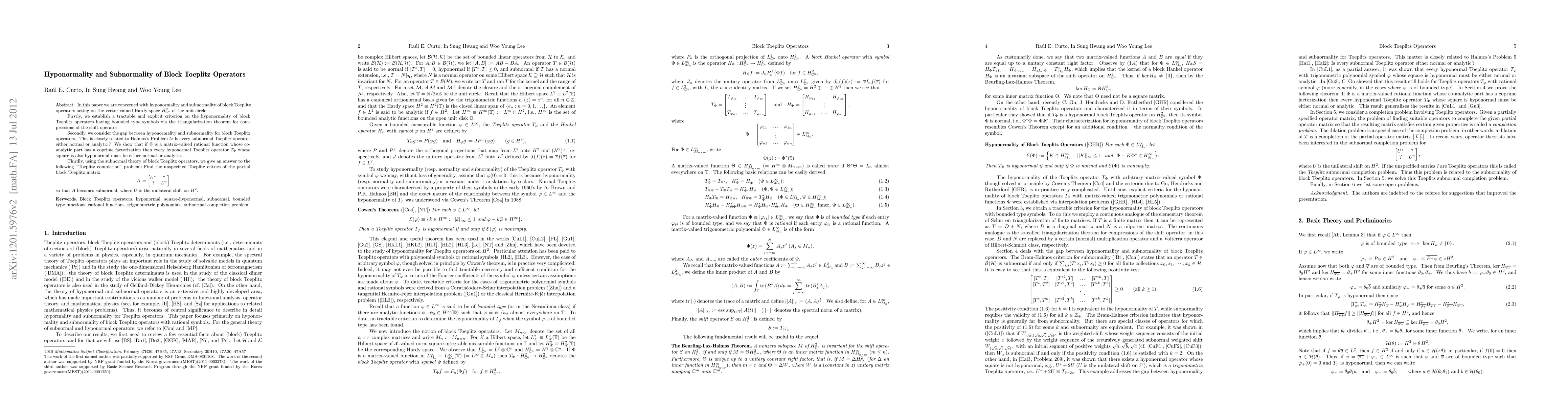In this paper we are concerned with hyponormality and subnormality of block Toeplitz operators acting on the vector-valued Hardy space $H^2_{\mathbb{C}^n}$ of the unit circle. Firstly, we establish a tractable and explicit criterion on the hyponormality of block Toeplitz operators having bounded type symbols via the triangularization theorem for compressions of the shift operator. Secondly, we consider the gap between hyponormality and subnormality for block Toeplitz operators. This is closely related to Halmos's Problem 5: Is every subnormal Toeplitz operator either normal or analytic? We show that if $\Phi$ is a matrix-valued rational function whose co-analytic part has a coprime factorization then every hyponormal Toeplitz operator $T_{\Phi}$ whose square is also hyponormal must be either normal or analytic. Thirdly, using the subnormal theory of block Toeplitz operators, we give an answer to the following "Toeplitz completion" problem: Find the unspecified Toeplitz entries of the partial block Toeplitz matrix $$A:=[U^*& ? ?&U^*] $$ so that $A$ becomes subnormal, where $U$ is the unilateral shift on $H^2$.
