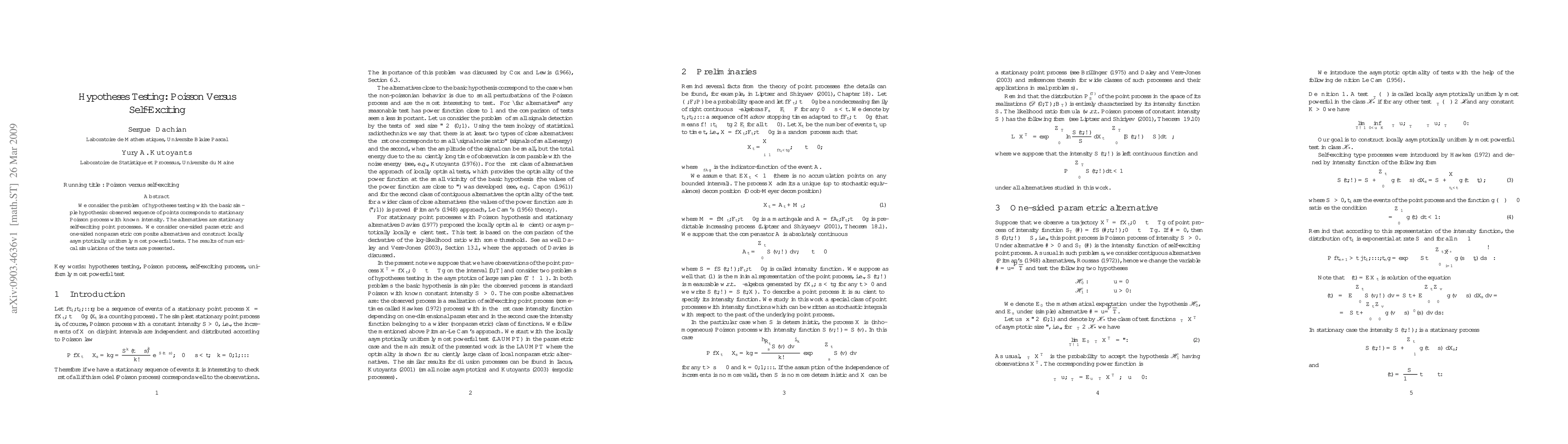 We consider the problem of hypotheses testing with the basic simple hypothesis: observed sequence of points corresponds to stationary Poisson process with known intensity. The alternatives are stationary self-exciting point processes. We consider one-sided parametric and one-sided nonparametric composite alternatives and construct locally asymptotically uniformly most powerful tests. The results of numerical simulations of the tests are presented.