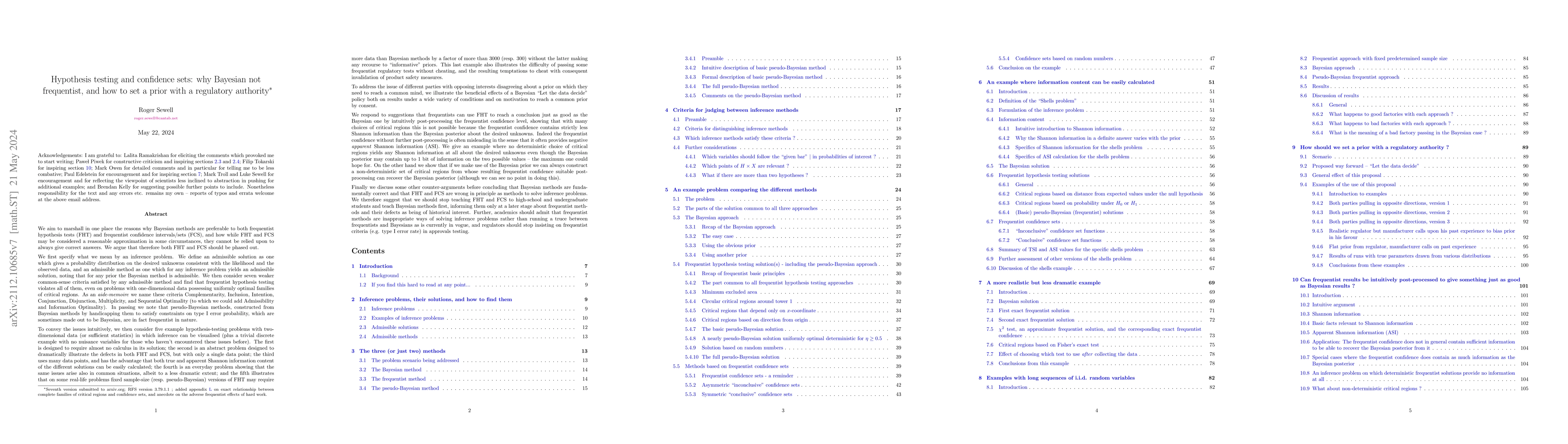 This paper argues in favor of Bayesian over frequentist hypothesis testing and confidence sets, demonstrating that Bayesian methods satisfy more criteria for inference problems and provide more information. It also discusses strategies for setting neutral priors to achieve agreement among parties with differing interests.