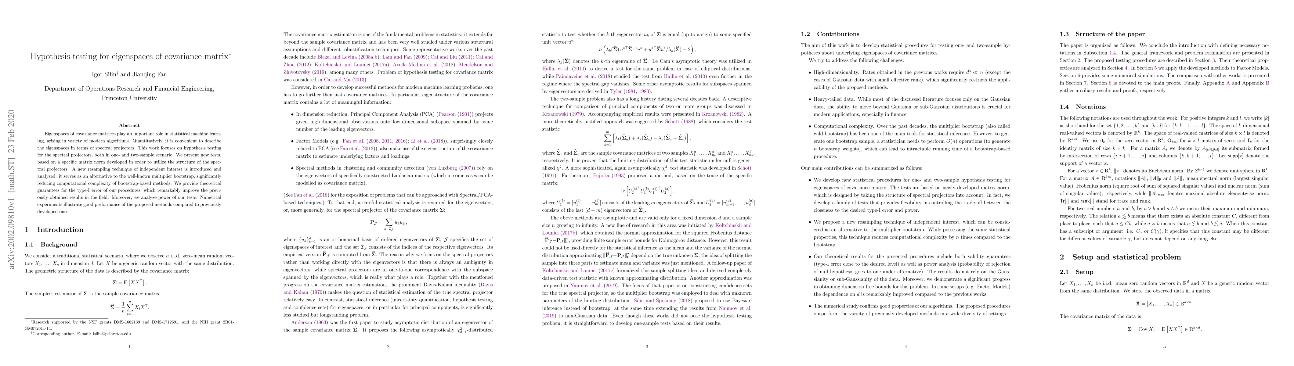 This paper develops new hypothesis tests for eigenspaces of covariance matrices using a novel matrix norm and a new resampling technique to reduce computational complexity. It provides theoretical guarantees for type-I error and analyzes the power of the tests, demonstrating superior performance in numerical experiments compared to existing methods.