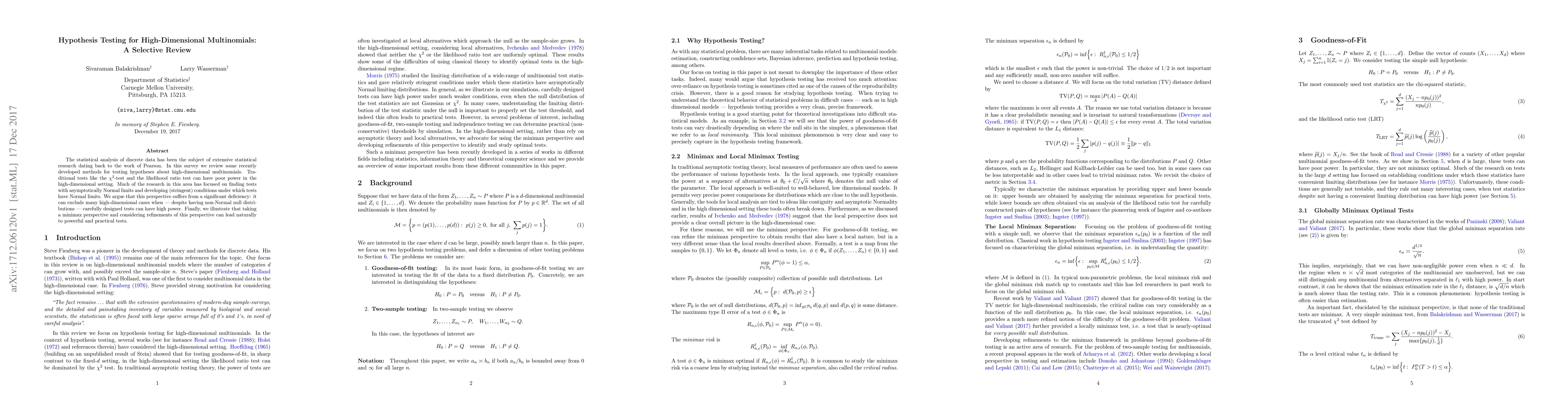 The statistical analysis of discrete data has been the subject of extensive statistical research dating back to the work of Pearson. In this survey we review some recently developed methods for testing hypotheses about high-dimensional multinomials. Traditional tests like the $\chi^2$ test and the likelihood ratio test can have poor power in the high-dimensional setting. Much of the research in this area has focused on finding tests with asymptotically Normal limits and developing (stringent) conditions under which tests have Normal limits. We argue that this perspective suffers from a significant deficiency: it can exclude many high-dimensional cases when - despite having non Normal null distributions - carefully designed tests can have high power. Finally, we illustrate that taking a minimax perspective and considering refinements of this perspective can lead naturally to powerful and practical tests.