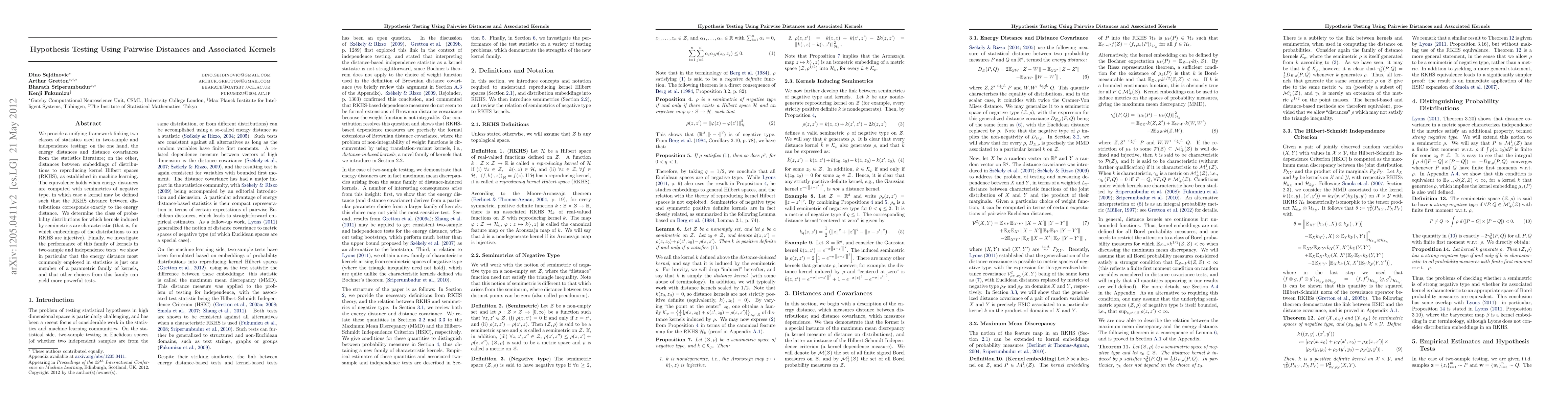 This paper unifies energy distances and distance covariances from statistics with distances between embeddings in reproducing kernel Hilbert spaces from machine learning. It shows that these methods are equivalent under certain conditions and explores the performance of these kernels in two-sample and independence tests, revealing that alternative kernels can lead to more powerful statistical tests.