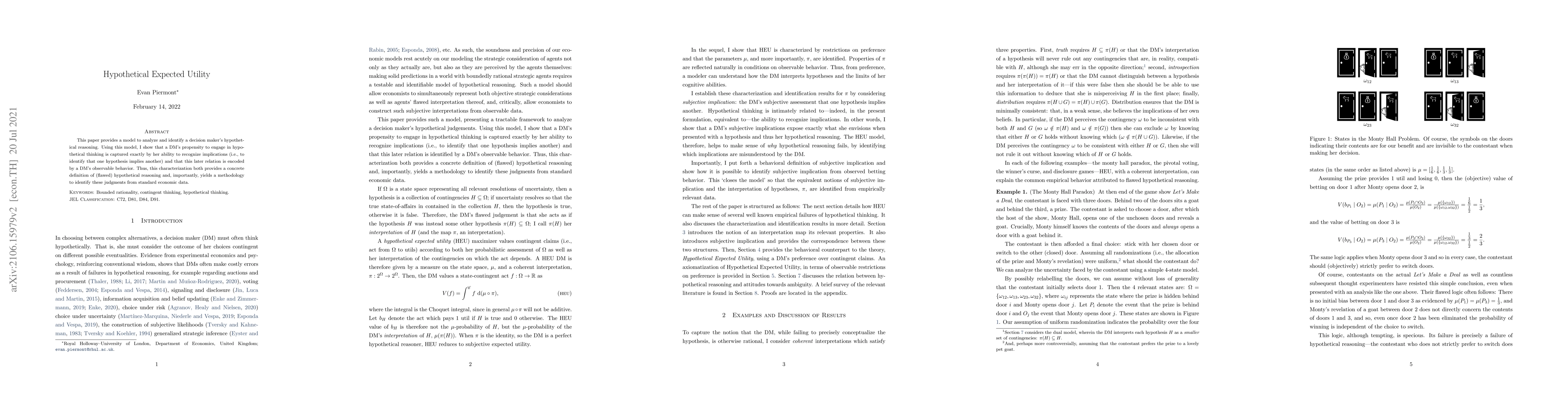 A new model identifies hypothetical expected utility through a decision maker's ability to recognize implications, allowing for flawed hypothetical reasoning to be quantified in economic data. This characterization provides a concrete definition and methodology to identify these judgments from standard economic data.