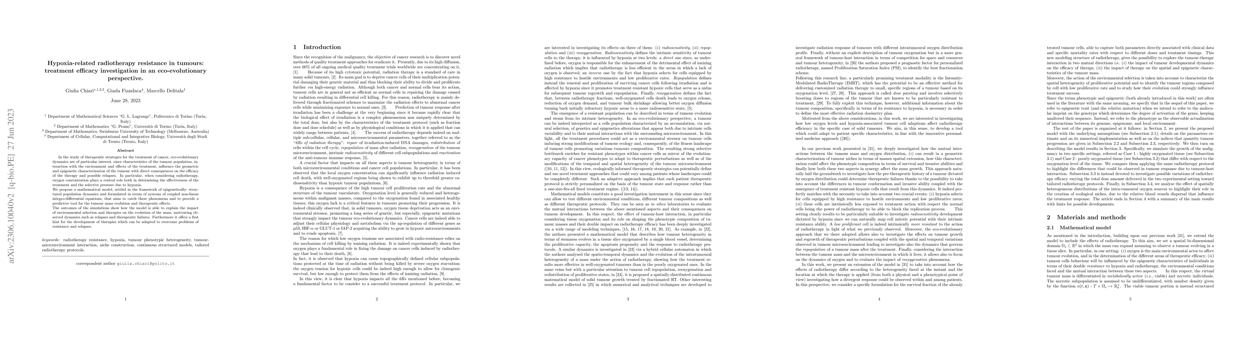This study develops a mathematical model to investigate hypoxia-related radiotherapy resistance in tumors, focusing on the eco-evolutionary dynamics influencing tumor population characteristics and treatment efficacy. The model predicts tumor mass evolution and therapeutic outcomes, offering insights into overcoming resistance and relapses.