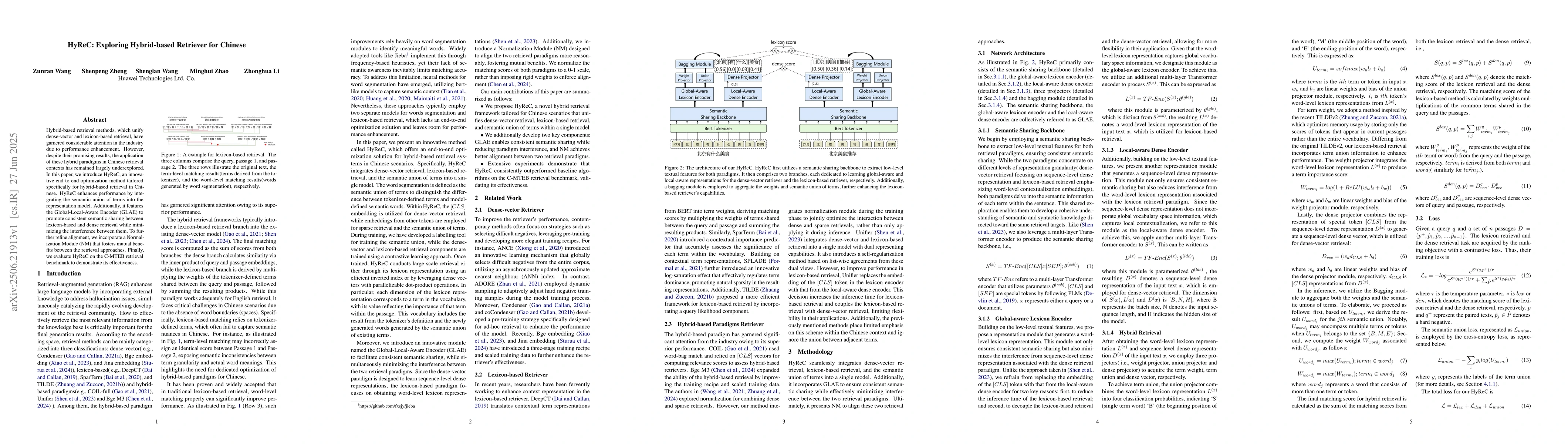 Hybrid-based retrieval methods, which unify dense-vector and lexicon-based retrieval, have garnered considerable attention in the industry due to performance enhancement. However, despite their promising results, the application of these hybrid paradigms in Chinese retrieval contexts has remained largely underexplored. In this paper, we introduce HyReC, an innovative end-to-end optimization method tailored specifically for hybrid-based retrieval in Chinese. HyReC enhances performance by integrating the semantic union of terms into the representation model. Additionally, it features the Global-Local-Aware Encoder (GLAE) to promote consistent semantic sharing between lexicon-based and dense retrieval while minimizing the interference between them. To further refine alignment, we incorporate a Normalization Module (NM) that fosters mutual benefits between the retrieval approaches. Finally, we evaluate HyReC on the C-MTEB retrieval benchmark to demonstrate its effectiveness.