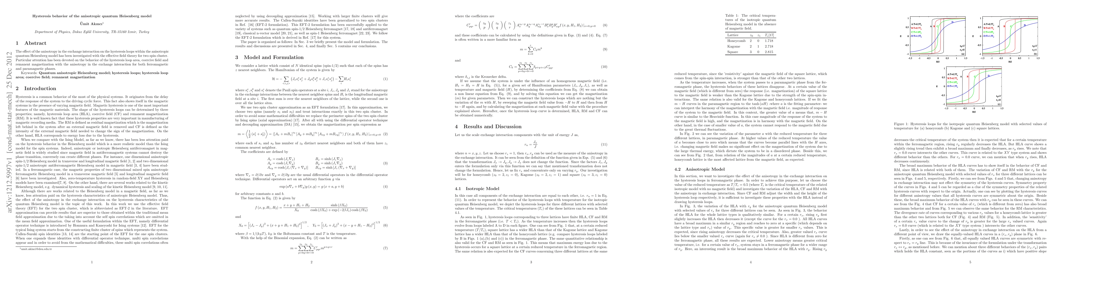 This study investigates the hysteresis behavior in the anisotropic quantum Heisenberg model using effective field theory, focusing on how anisotropy affects the hysteresis loop area, coercive field, and remanent magnetization in both ferromagnetic and paramagnetic phases.