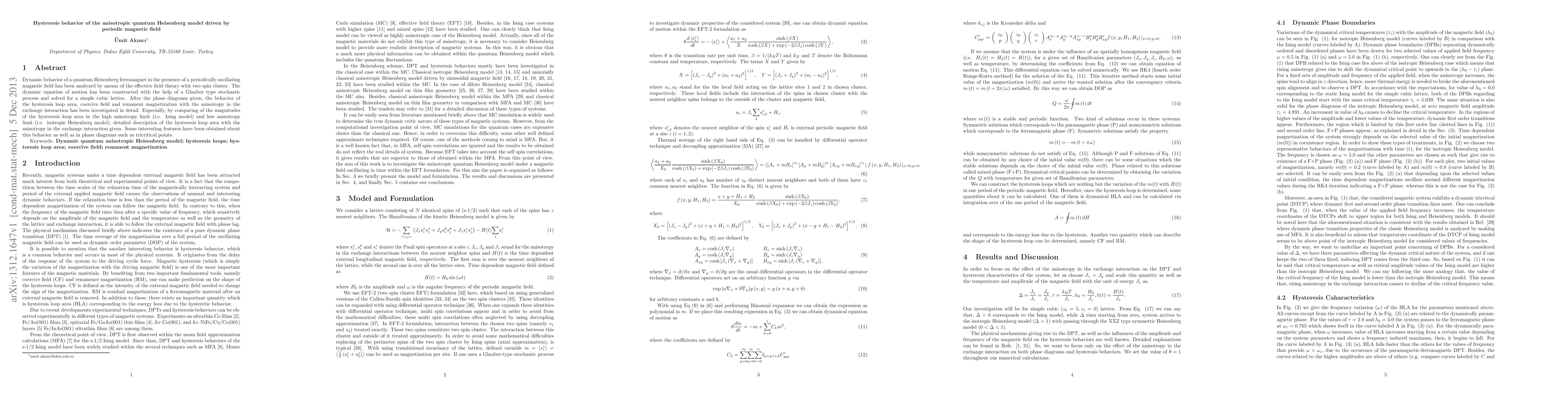 This paper investigates the dynamic behavior of a quantum Heisenberg ferromagnet under a periodically oscillating magnetic field using effective field theory and stochastic processes. The study reveals detailed insights into the hysteresis loop area, coercive field, and remanent magnetization, particularly highlighting the differences in hysteresis behavior between high and low anisotropy limits.