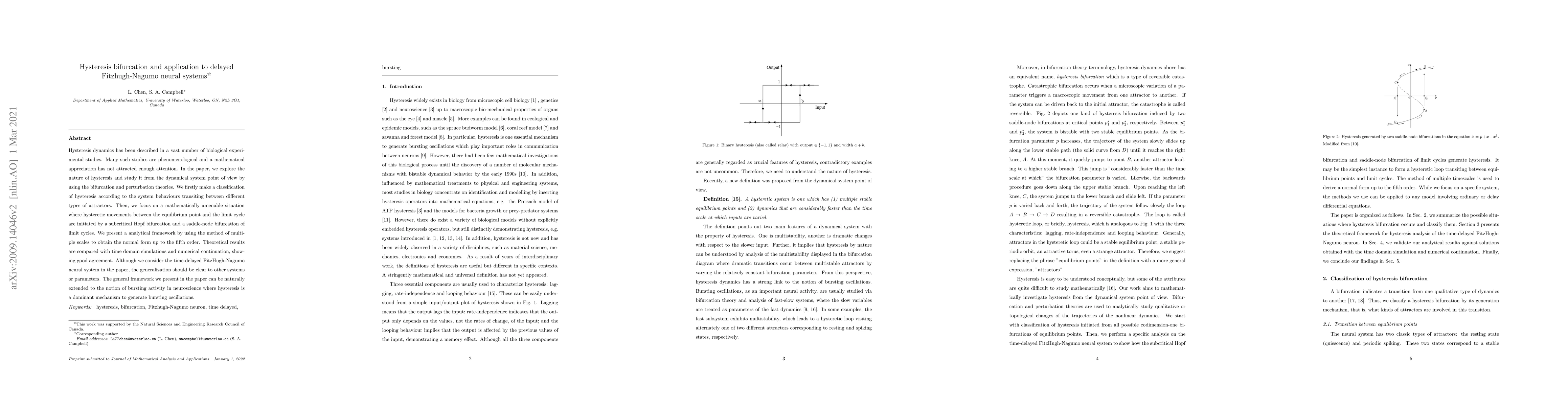 Researchers explore hysteresis in biological systems using bifurcation and perturbation theories to study its dynamics and behavior, with implications for understanding bursting activity in neuroscience.