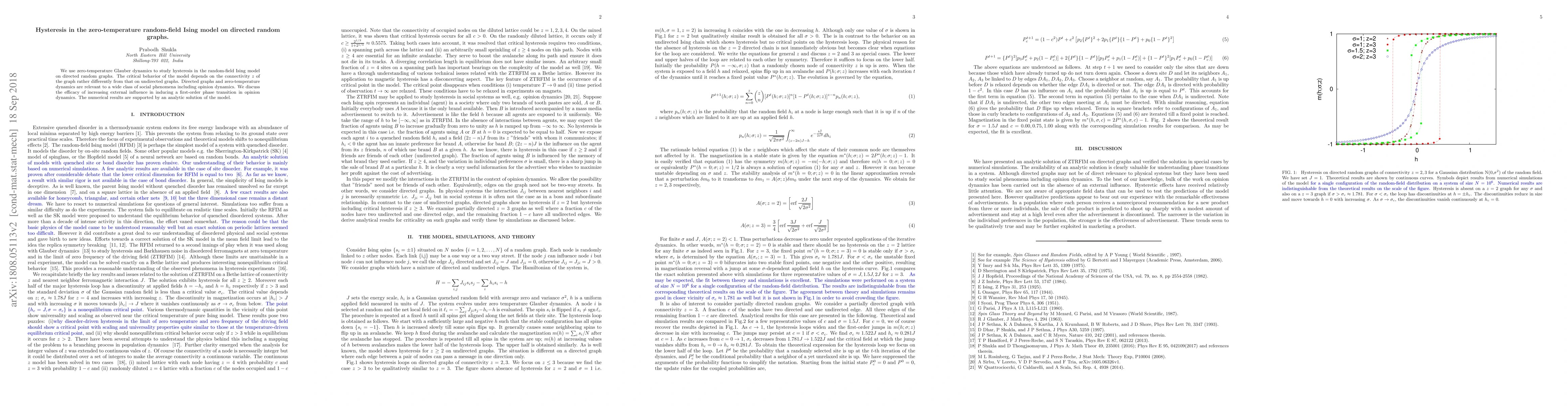 The research employs zero-temperature Glauber dynamics on directed random graphs to study hysteresis in the random-field Ising model. The model's critical behavior is analyzed based on the connectivity z of the graph, which differs from undirected graphs.