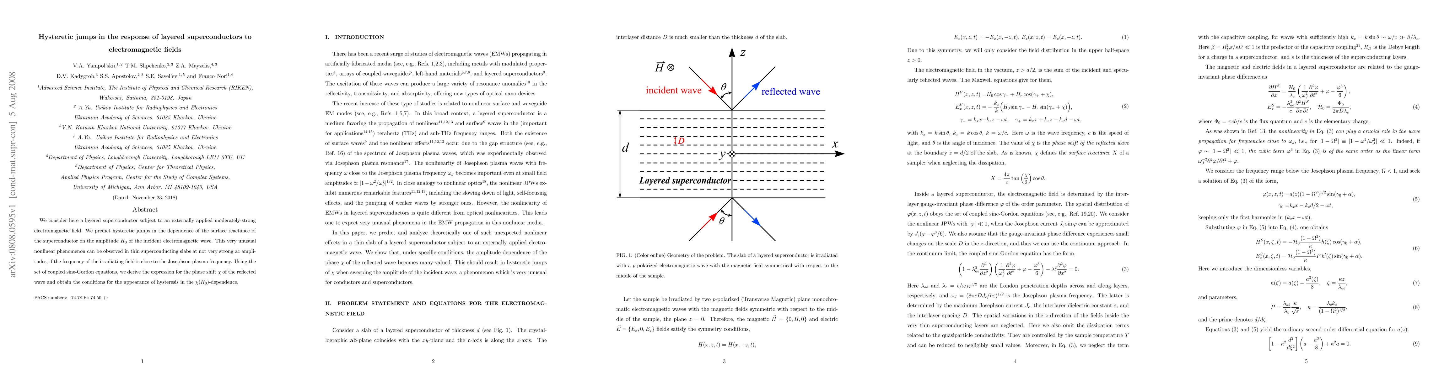 Researchers predict a unique nonlinear phenomenon in layered superconductors, where an electromagnetic field causes hysteresis in the response of the material to the field's amplitude. This effect can be observed at moderate field strengths and frequencies near the Josephson plasma frequency.
