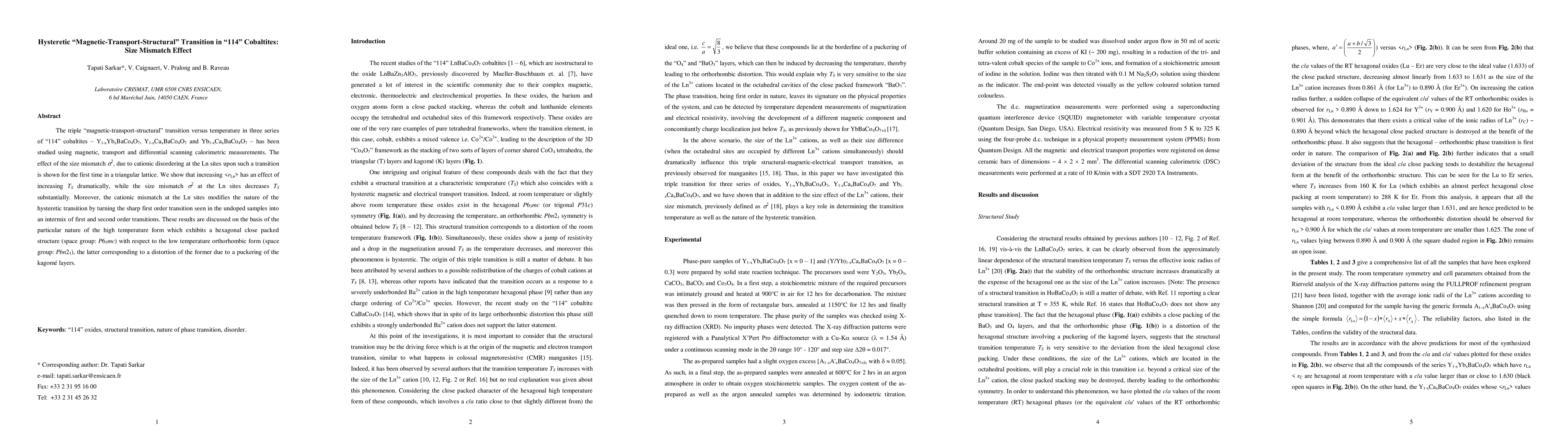 Researchers studied a specific type of cobaltite material that undergoes multiple phase transitions as temperature changes, finding that size mismatch affects the nature of these transitions.