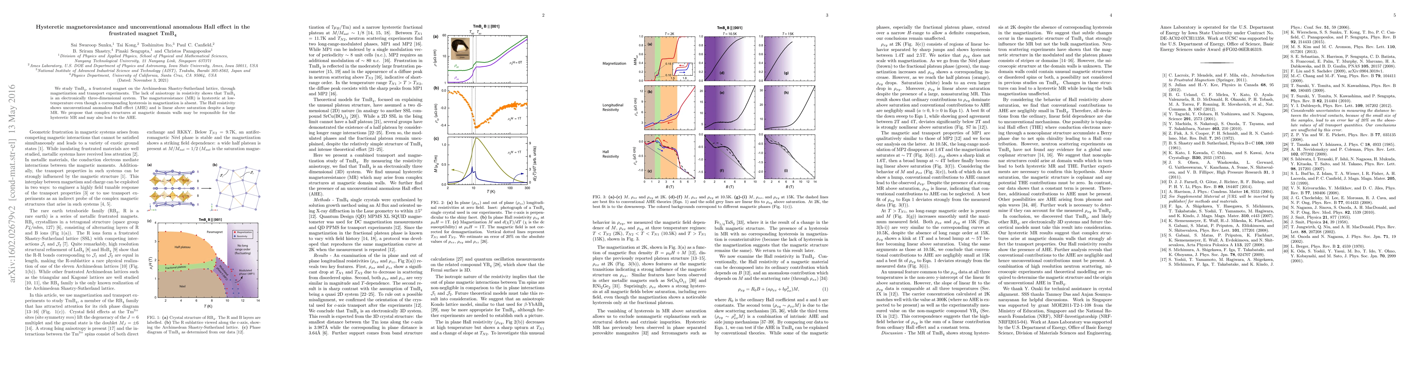 This study investigates TmB_4, a frustrated magnet, revealing hysteretic magnetoresistance and an unconventional anomalous Hall effect. The findings suggest that complex magnetic domain wall structures may be responsible for these phenomena.