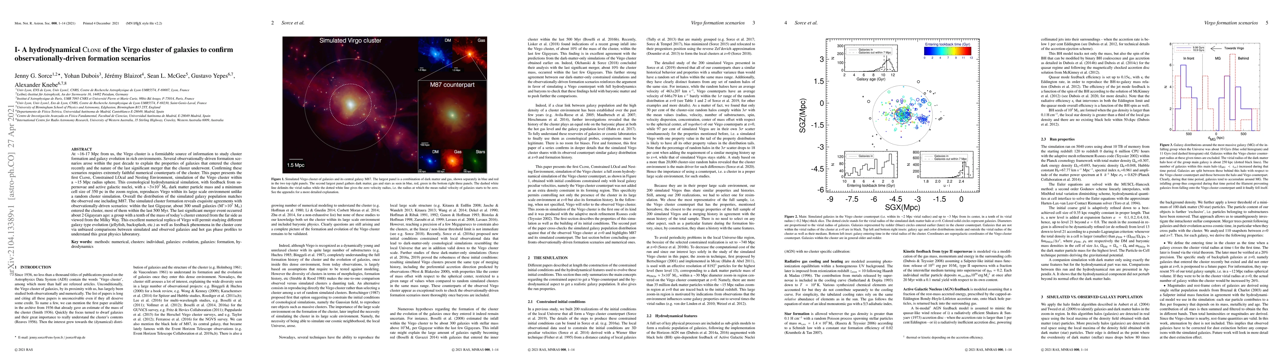 At ~16-17Mpc from us, the Virgo cluster is a formidable source of information to study cluster formation and galaxy evolution in rich environments. Several observationally-driven formation scenarios arose within the past decade to explain the properties of galaxies that entered the cluster recently and the nature of the last significant merger that the cluster underwent. Confirming these scenarios requires extremely faithful numerical counterparts of the cluster. This paper presents the first CLONE, Constrained LOcal and Nesting Environment, simulation of the Virgo cluster within a ~15Mpc radius sphere. This cosmological hydrodynamical simulation, with feedback from supernovae and active galactic nuclei, with a ~3x10^7Msun dark matter particle mass and a minimum cell size of 350pc in the zoom region, reproduces Virgo within its large scale environment unlike a random cluster simulation. Overall the distribution of the simulated galaxy population matches the observed one including M87. The simulated cluster formation reveals exquisite agreements with observationally-driven scenarios: within the last Gigayear, about 300 small galaxies (M*>10^7Msun) entered the cluster, most of them within the last 500Myr. The last significant merger event occurred about 2 Gigayears ago: a group with a tenth of the mass of today's cluster entered from the far side as viewed from the Milky Way. This excellent numerical replica of Virgo will permit studying different galaxy type evolution (jellyfish, backsplash, etc.) as well as feedback phenomena in the cluster core via unbiased comparisons between simulated and observed galaxies and hot gas phase profiles to understand this great physics laboratory.
