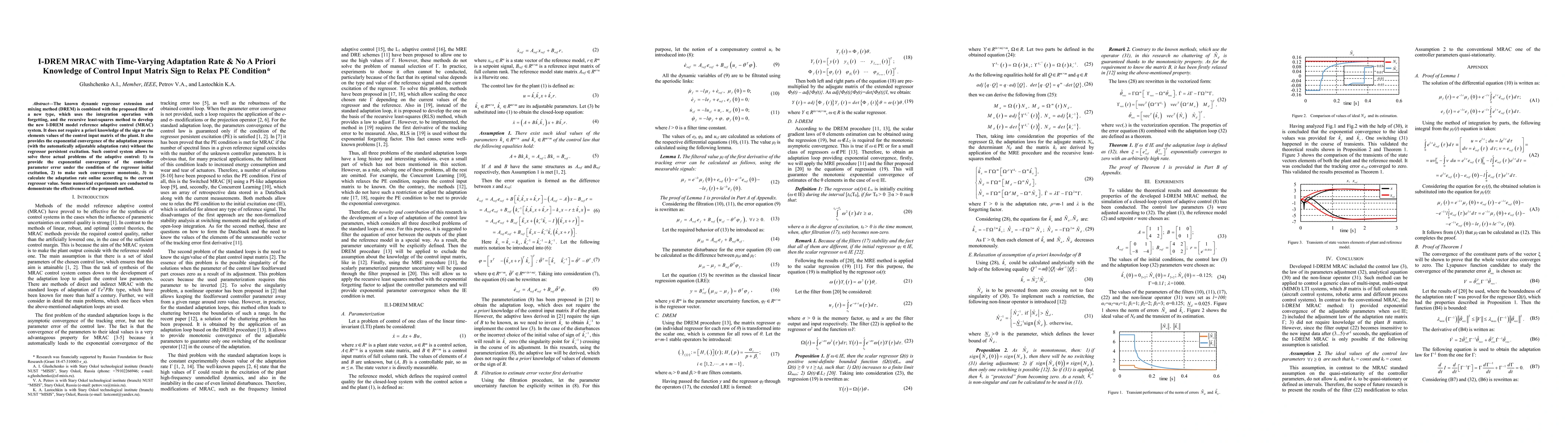 This research paper introduces a new adaptive control system called I-DREM MRAC that achieves exponential convergence without requiring prior knowledge of the plant's control input matrix, addressing three key challenges in adaptive control: monotonic convergence, adaptation rate calculation, and overcoming persistent excitation conditions.
