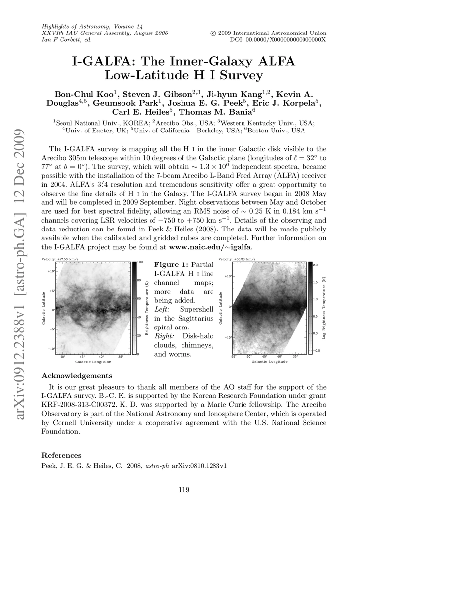 The I-GALFA survey maps the HI in the inner Galactic disk within 10 degrees of the Galactic plane, utilizing the Arecibo telescope's ALFA receiver for high-resolution and sensitive observations. The survey aims to produce 1.3 million spectra and will be publicly available upon completion.