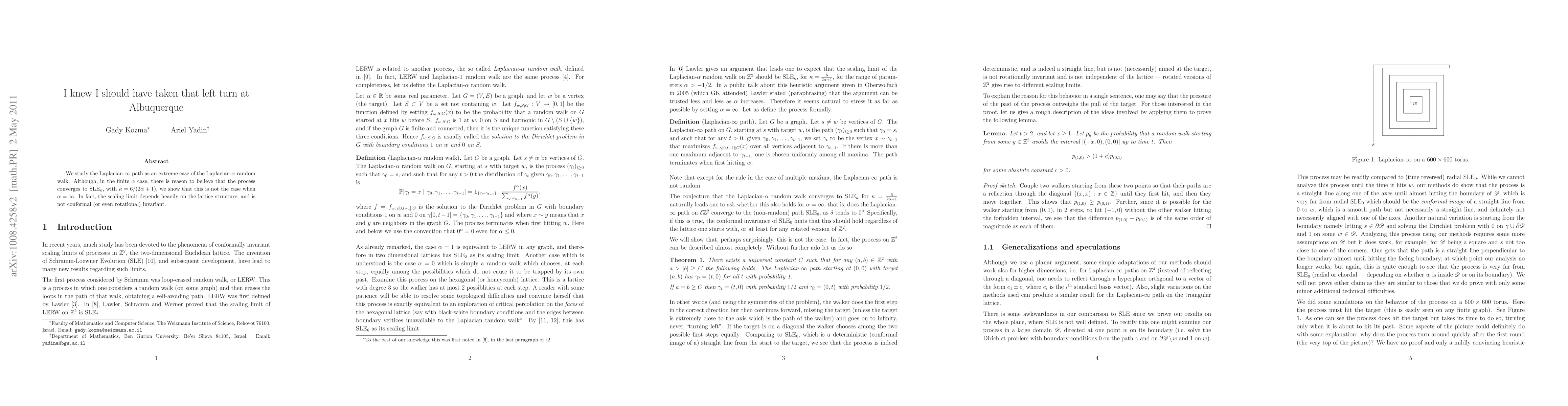 We study the Laplacian-infinity path as an extreme case of the Laplacian-alpha random walk. Although, in the finite alpha case, there is reason to believe that the process converges to SLE, we show that this is not the case when alpha is infinite. In fact, the scaling limit depends heavily on the lattice structure, and is not conformal (or even rotational) invariant.