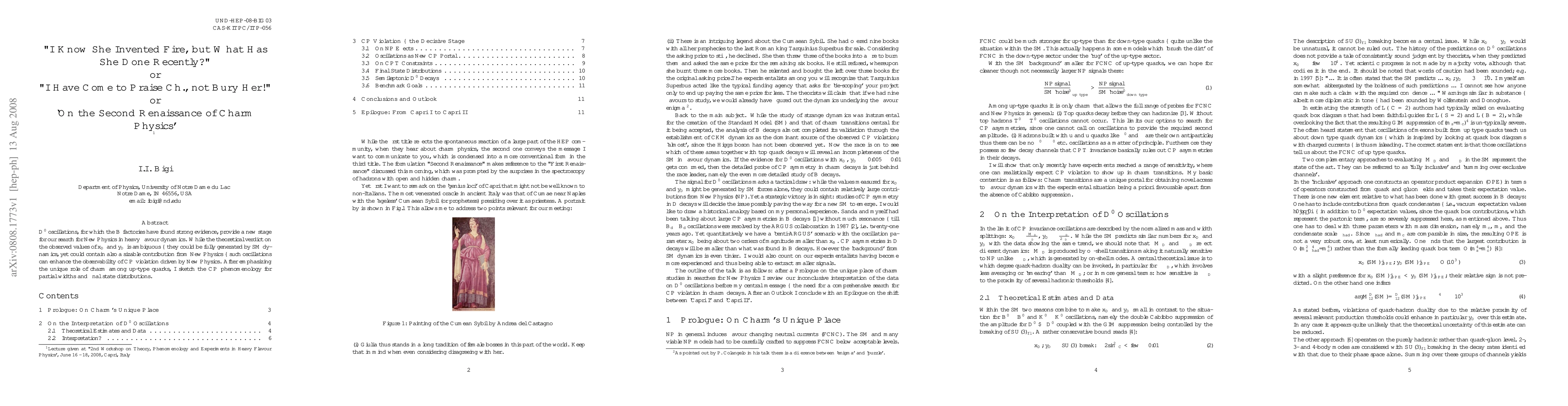 $D^0$ oscillations, for which the $B$ factories have found strong evidence, provide a new stage for our search for New Physics in heavy flavour dynamics. While the theoretical verdict on the observed values of $x_D$ and $y_D$ is ambiguous -- they could be fully generated by SM dynamics, yet could contain also a sizable contribution from New Physics -- such oscillations can enhance the observability of \cp violation driven by New Physics. After emphasizing the unique role of charm among up-type quarks, I sketch the \cp phenomenology for partial widths and final state distributions.