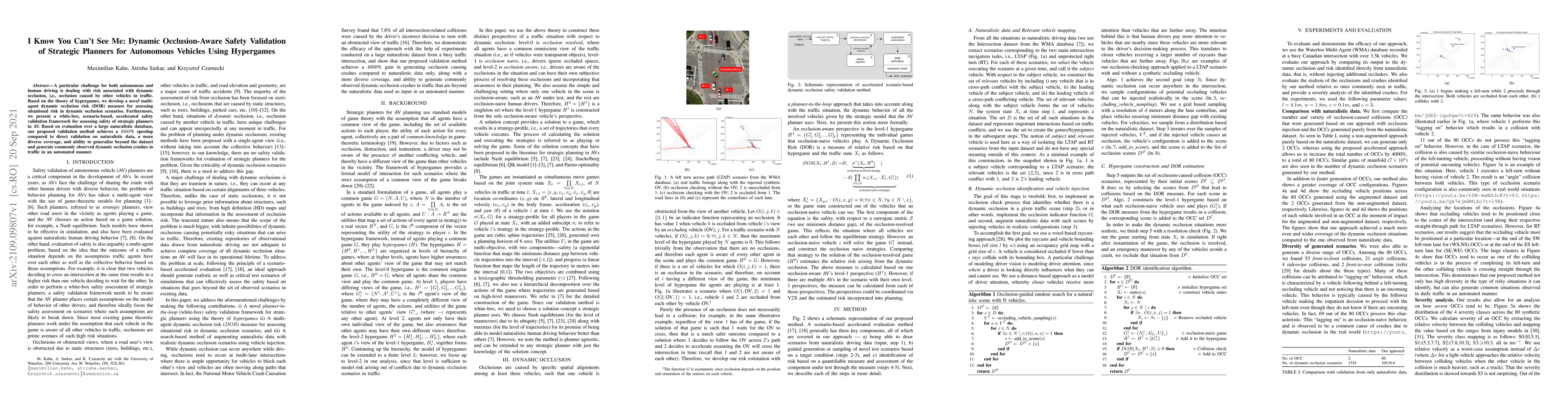 This paper introduces a novel multi-agent dynamic occlusion risk measure based on hypergames to assess risk in dynamic occlusion scenarios for autonomous vehicles. It also proposes a white-box safety validation framework that achieves a 4000% speedup over direct validation, offering diverse coverage and the ability to generalize beyond specific datasets.