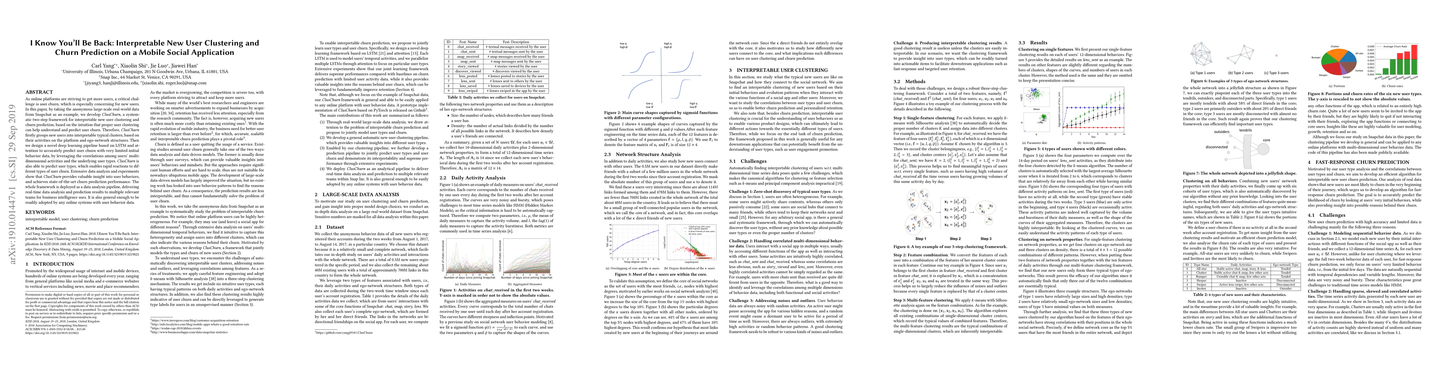 A new framework called ClusChurn predicts user churn on mobile social apps by clustering users based on their activities and leveraging correlations among users' behaviors to predict churn types.