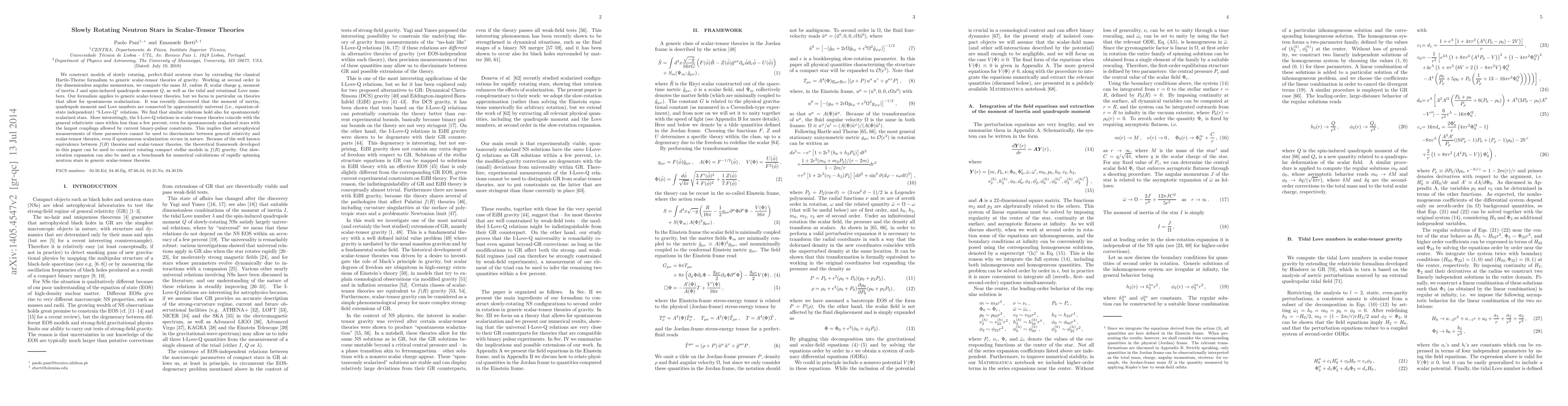 This paper extends the Hartle-Thorne formalism to scalar-tensor theories of gravity, developing models for slowly rotating neutron stars and finding that "I-Love-Q" relations hold similarly to general relativity, implying these relations cannot distinguish between general relativity and scalar-tensor theories.
