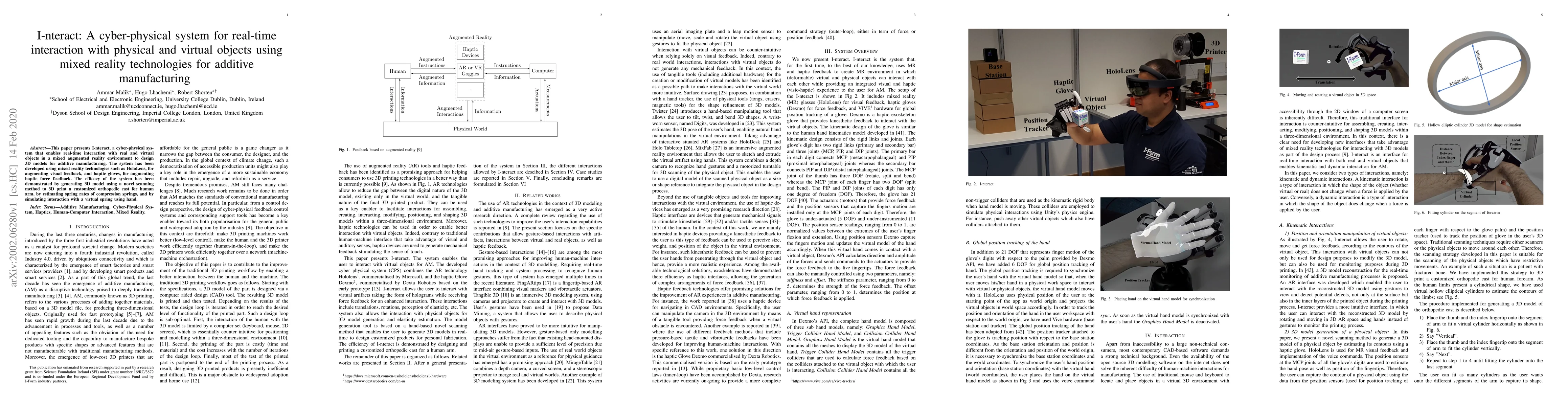 This paper introduces I-nteract, a cyber-physical system leveraging mixed reality for real-time interaction with both physical and virtual objects, specifically for additive manufacturing. The system uses HoloLens and haptic gloves to provide visual and force feedback, demonstrated through applications like creating a customized orthopedic cast and estimating spring rates.