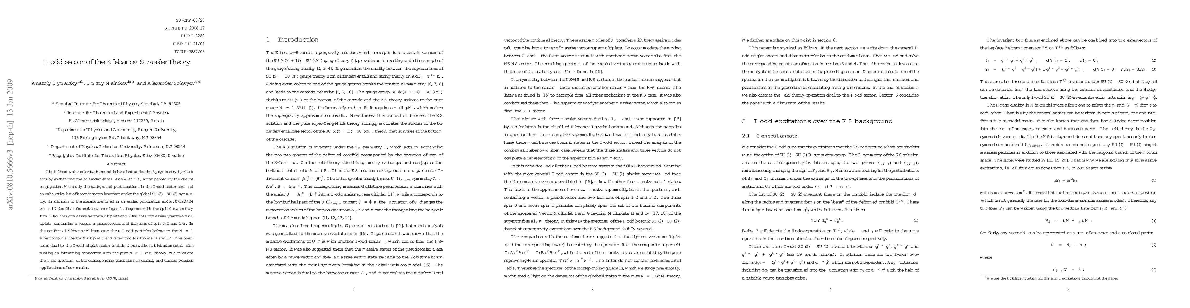This paper investigates perturbations in the I-odd sector of the Klebanov-Strassler theory, identifying new bosonic states invariant under SU(2)*SU(2) symmetry. It discovers seven families of massive spin-1 states, forming massive vector and gravitino multiplets, and connects these findings to the pure N=1 SYM theory, calculating the corresponding glueball mass spectrum.