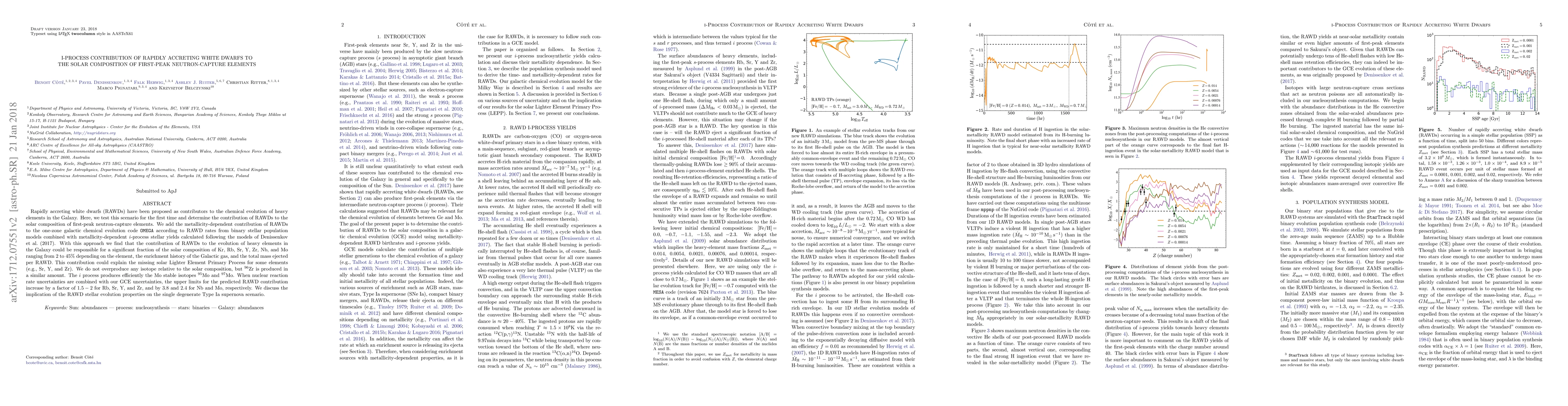 Rapidly accreting white dwarfs (RAWDs) have been proposed as contributors to the chemical evolution of heavy elements in the Galaxy. Here, we test this scenario for the first time and determine the contribution of RAWDs to the solar composition of first-peak neutron-capture elements. We add the metallicity-dependent contribution of RAWDs to the one-zone galactic chemical evolution code OMEGA according to RAWD rates from binary stellar population models combined with metallicity-dependent $i$-process stellar yields calculated following the models of Denissenkov et al. (2017). With this approach we find that the contribution of RAWDs to the evolution of heavy elements in the Galaxy could be responsible for a significant fraction of the solar composition of Kr, Rb, Sr, Y, Zr, Nb, and Mo ranging from $2$ to $45\%$ depending on the element, the enrichment history of the Galactic gas, and the total mass ejected per RAWD. This contribution could explain the missing solar Lighter Element Primary Process for some elements (e.g., Sr, Y, and Zr). We do not overproduce any isotope relative to the solar composition, but $^{96}$Zr is produced in a similar amount. The $i$ process produces efficiently the Mo stable isotopes $^{95}$Mo and $^{97}$Mo. When nuclear reaction rate uncertainties are combined with our GCE uncertainties, the upper limits for the predicted RAWD contribution increase by a factor of $1.5-2$ for Rb, Sr, Y, and Zr, and by 3.8 and 2.4 for Nb and Mo, respectively. We discuss the implication of the RAWD stellar evolution properties on the single degenerate Type Ia supernova scenario.