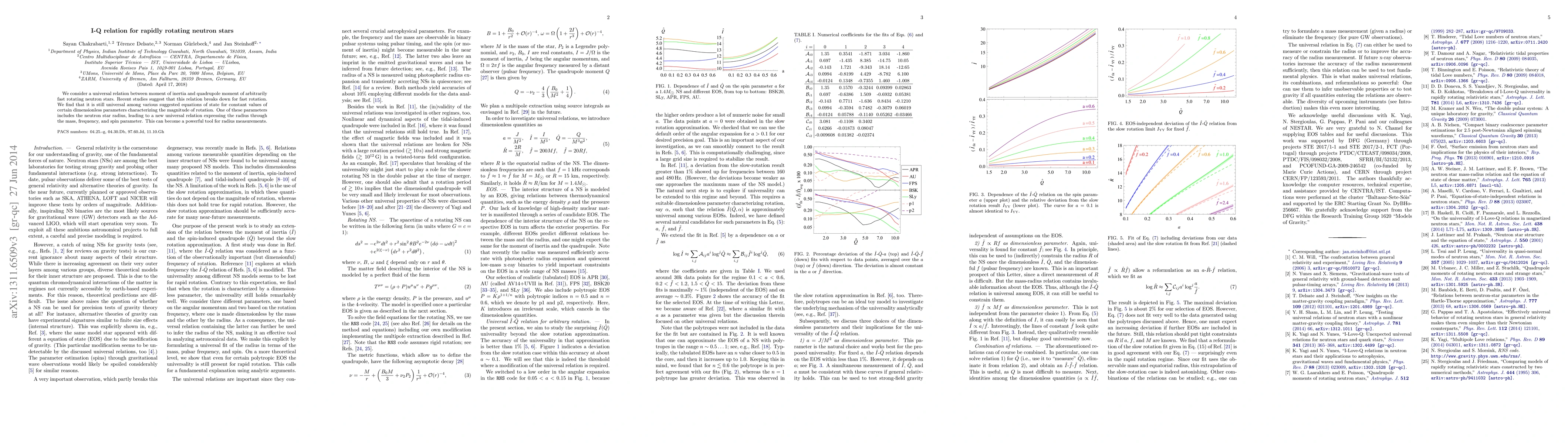 This paper establishes a universal relation between the moment of inertia and quadrupole moment of rapidly rotating neutron stars, showing that it remains valid across various equations of state, and introduces a new universal relation linking neutron star radius to mass, frequency, and spin parameter, potentially useful for radius measurements.