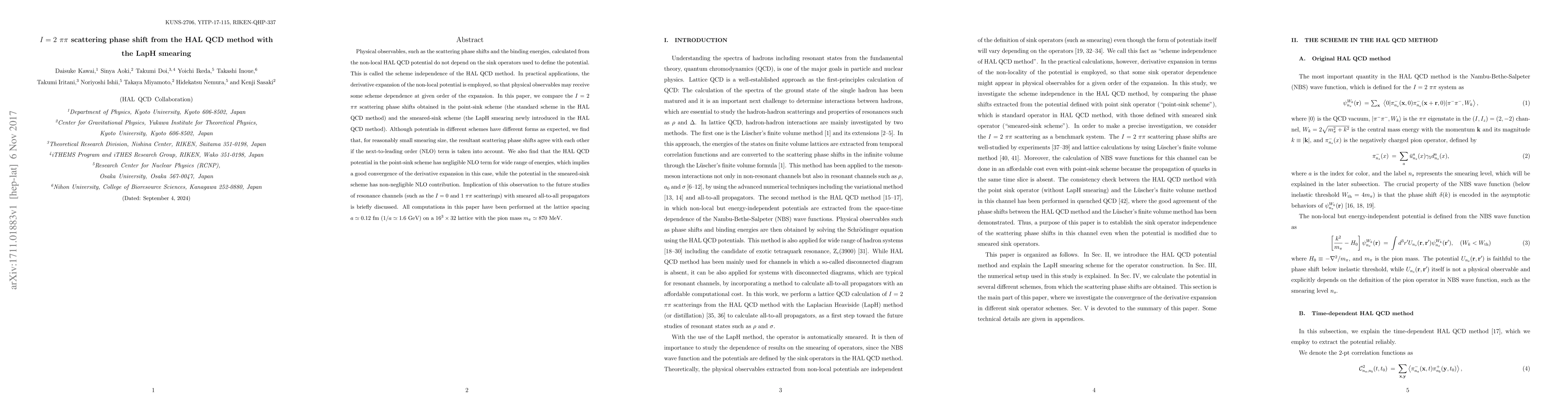 This paper investigates the $I=2$ $\pi\pi$ scattering phase shifts using the HAL QCD method with LapH smearing, finding that the phase shifts agree when next-to-leading order terms are considered, despite differences in the potential forms between point-sink and smeared-sink schemes. The study highlights the good convergence of the derivative expansion in the point-sink scheme.