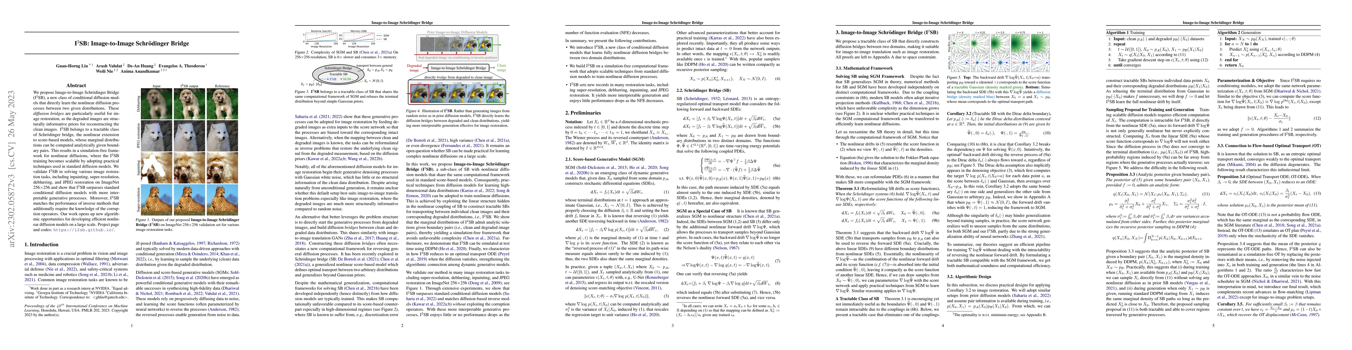 The paper introduces Image-to-Image Schr\"odinger Bridge (I$^2$SB), a novel conditional diffusion model that learns nonlinear diffusion processes between two image distributions, enabling efficient image restoration tasks. I$^2$SB demonstrates superior performance over standard diffusion models in various image restoration applications.