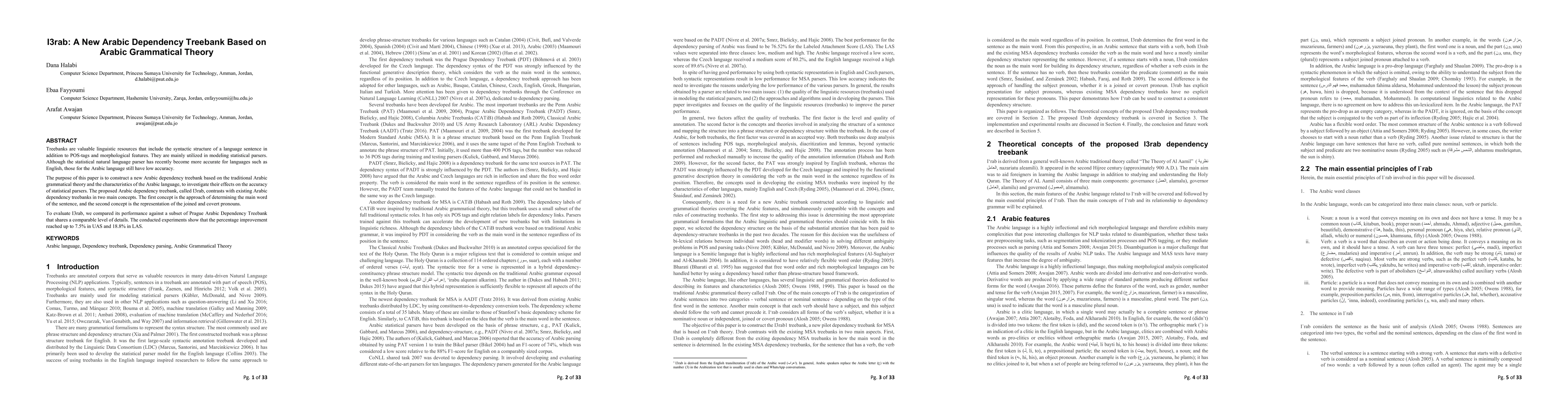 This paper introduces I3rab, a novel Arabic dependency treebank based on traditional Arabic grammatical theory, aiming to improve the accuracy of statistical parsers for Arabic. Experiments show a significant improvement of up to 7.5% in Universal Dependency Attachment Score (UAS) and 18.8% in Labeled Attachment Score (LAS) compared to a comparable existing treebank.