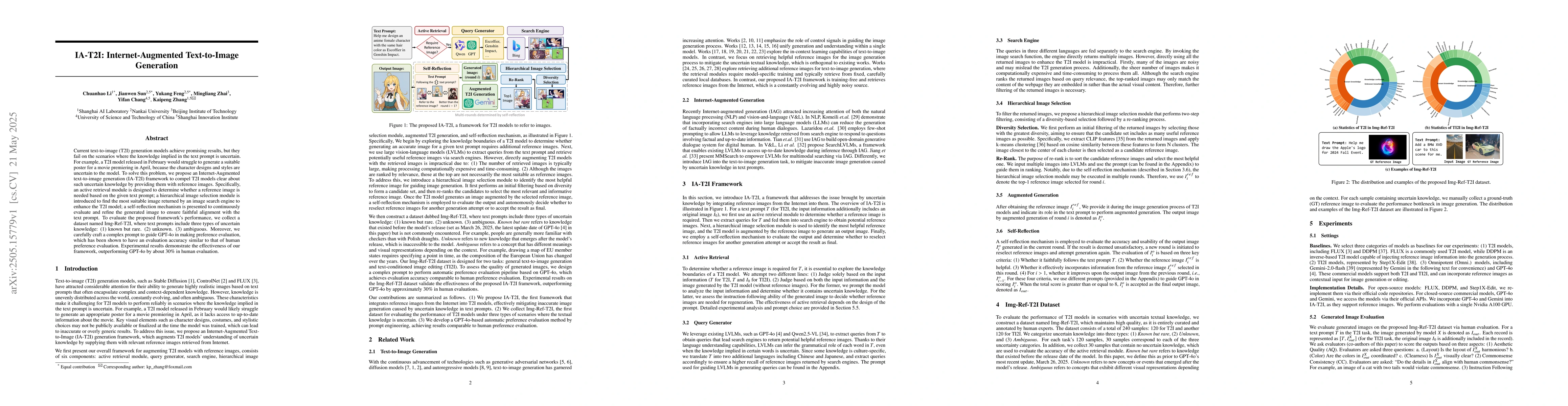 The introduction of an Internet-Augmented text-to-image generation framework (IA-T2I) that utilizes reference images to clarify uncertain knowledge in text prompts.