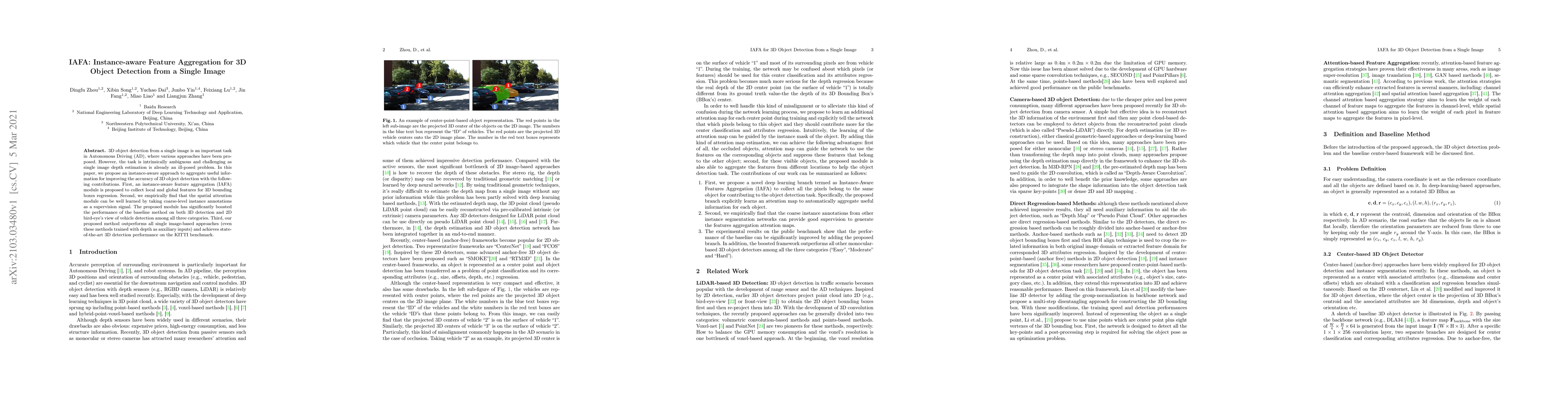 This paper proposes an instance-aware feature aggregation (IAFA) module to enhance 3D object detection from a single image, achieving state-of-the-art results on the KITTI benchmark. The method leverages spatial attention and coarse-level instance annotations to improve feature aggregation for 3D bounding box regression.