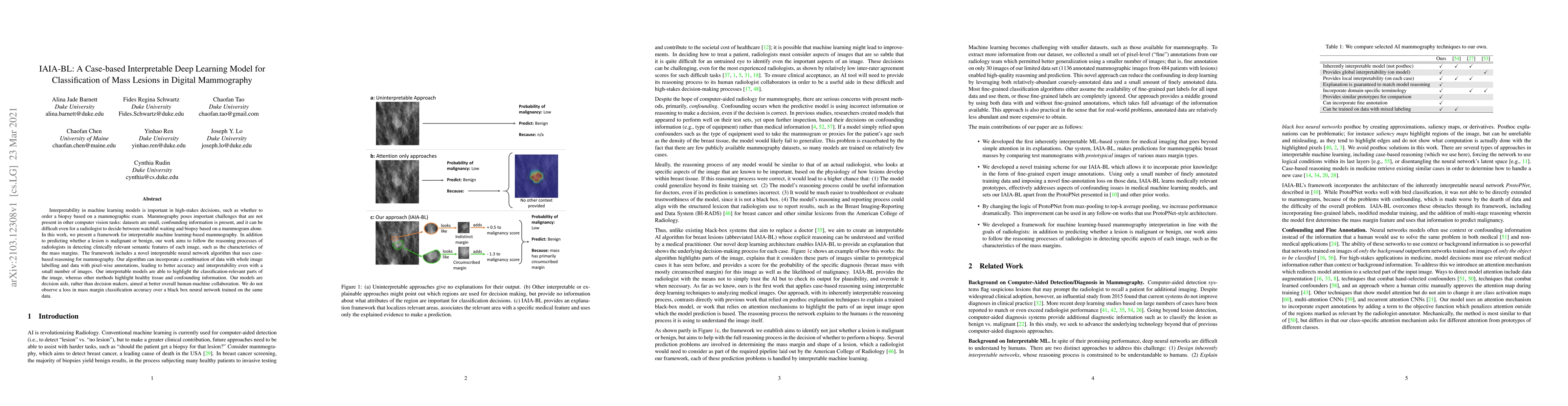 This paper presents an interpretable deep learning model for classifying mass lesions in digital mammography, emphasizing the importance of interpretability in high-stakes medical decisions. The model uses case-based reasoning to achieve high accuracy and interpretability, highlighting relevant features while maintaining performance comparable to black box neural networks.