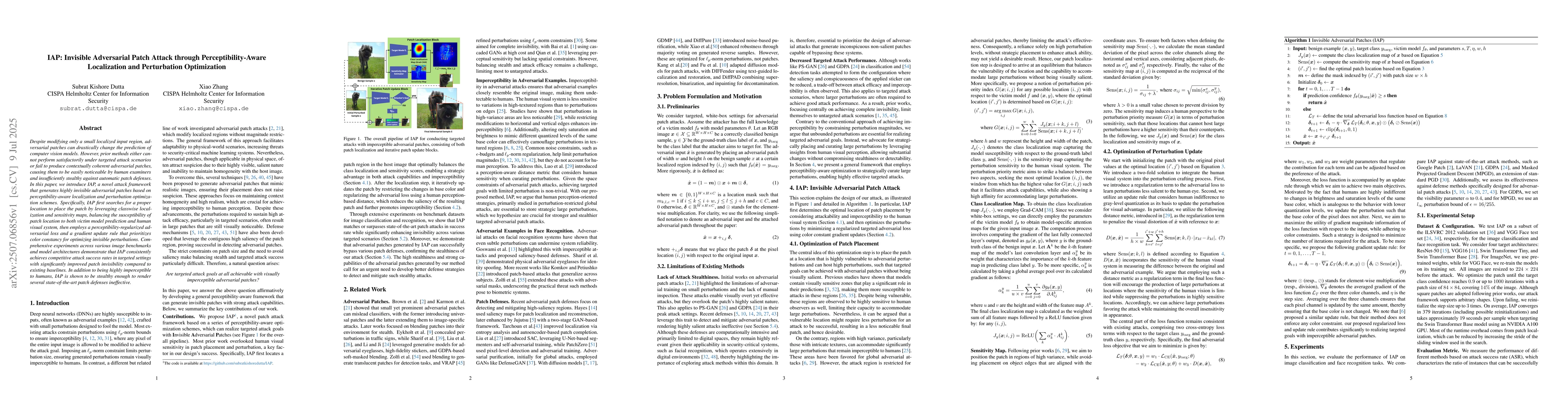 Despite modifying only a small localized input region, adversarial patches can drastically change the prediction of computer vision models. However, prior methods either cannot perform satisfactorily under targeted attack scenarios or fail to produce contextually coherent adversarial patches, causing them to be easily noticeable by human examiners and insufficiently stealthy against automatic patch defenses. In this paper, we introduce IAP, a novel attack framework that generates highly invisible adversarial patches based on perceptibility-aware localization and perturbation optimization schemes. Specifically, IAP first searches for a proper location to place the patch by leveraging classwise localization and sensitivity maps, balancing the susceptibility of patch location to both victim model prediction and human visual system, then employs a perceptibility-regularized adversarial loss and a gradient update rule that prioritizes color constancy for optimizing invisible perturbations. Comprehensive experiments across various image benchmarks and model architectures demonstrate that IAP consistently achieves competitive attack success rates in targeted settings with significantly improved patch invisibility compared to existing baselines. In addition to being highly imperceptible to humans, IAP is shown to be stealthy enough to render several state-of-the-art patch defenses ineffective.