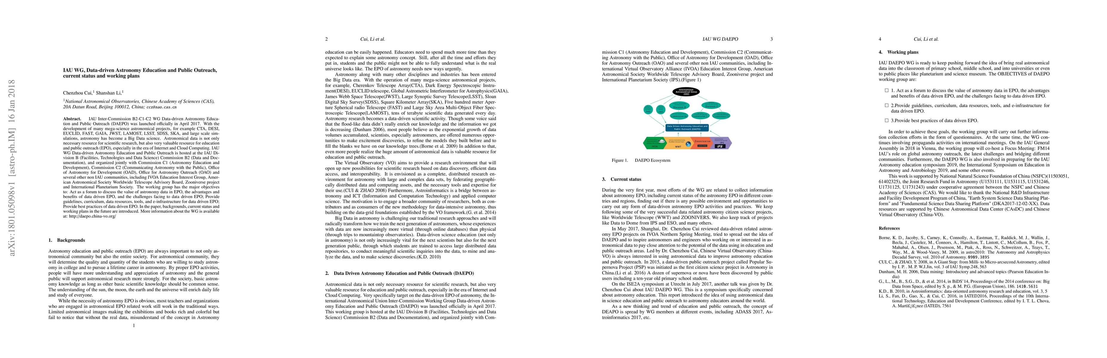 The IAU WG on Data-driven Astronomy Education and Public Outreach (DAEPO) was established in 2017 to leverage big data in astronomy for educational and outreach purposes. The group aims to discuss, provide guidelines, and develop resources for data-driven public engagement in astronomy.