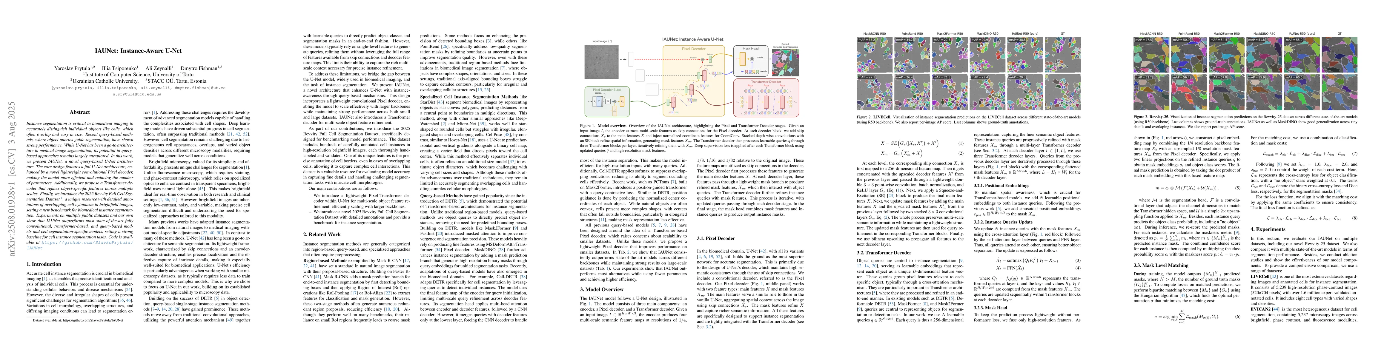 Instance segmentation is critical in biomedical imaging to accurately distinguish individual objects like cells, which often overlap and vary in size. Recent query-based methods, where object queries guide segmentation, have shown strong performance. While U-Net has been a go-to architecture in medical image segmentation, its potential in query-based approaches remains largely unexplored. In this work, we present IAUNet, a novel query-based U-Net architecture. The core design features a full U-Net architecture, enhanced by a novel lightweight convolutional Pixel decoder, making the model more efficient and reducing the number of parameters. Additionally, we propose a Transformer decoder that refines object-specific features across multiple scales. Finally, we introduce the 2025 Revvity Full Cell Segmentation Dataset, a unique resource with detailed annotations of overlapping cell cytoplasm in brightfield images, setting a new benchmark for biomedical instance segmentation. Experiments on multiple public datasets and our own show that IAUNet outperforms most state-of-the-art fully convolutional, transformer-based, and query-based models and cell segmentation-specific models, setting a strong baseline for cell instance segmentation tasks. Code is available at https://github.com/SlavkoPrytula/IAUNet