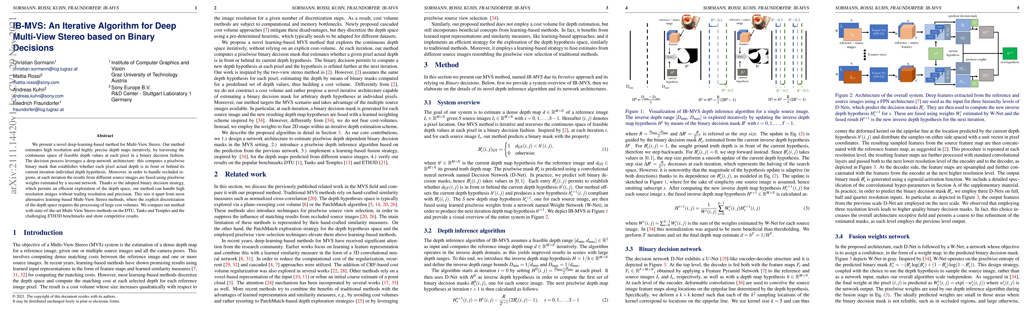 A new deep learning method for Multi-View Stereo uses a binary decision strategy to estimate high-resolution depth maps iteratively without sacrificing resolution or precision. It achieves competitive results compared to state-of-the-art methods on various benchmarks.