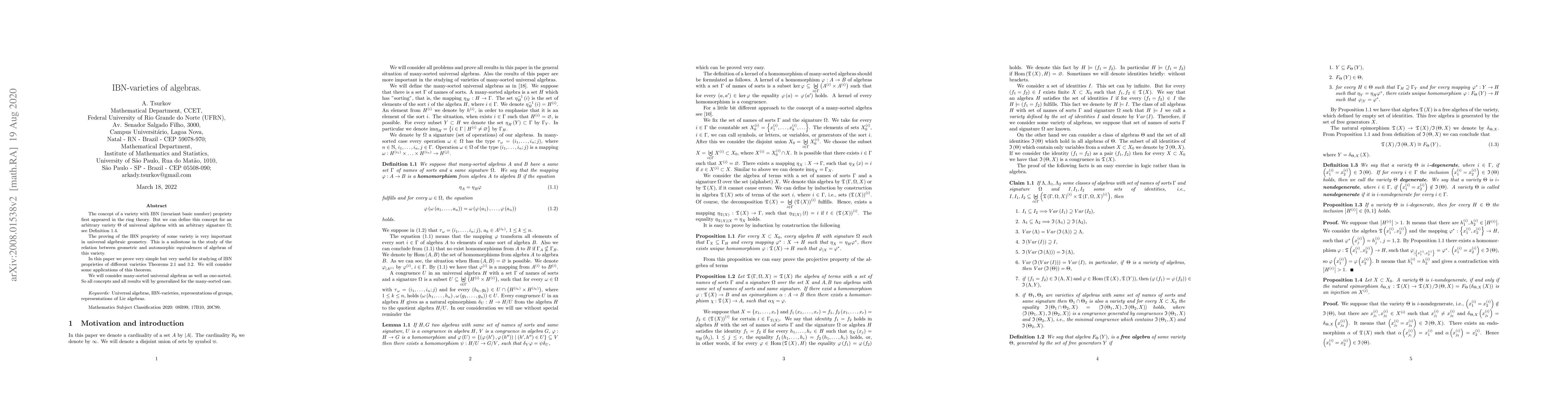 The concept of variety with IBN (invariant basic number) propriety first appeared in ring theory. But we can define this concept for arbitrary variety of universal algebras with arbitrary signature; see Definition 1.4. The proving of the IBN propriety of some variety is very important in universal algebraic geometry. This is a milestone in the study of the relation between geometric and automorphic equivalences of algebras of this variety. In this paper we prove very simple but very useful for studying of IBN proprieties of different varieties Theorems 2.1 and 3.2. We will consider applications of this theorem. We will consider many-sorted universal algebras as well as one-sorted. So all concepts and all results will by generalized for the many-sorted case.
