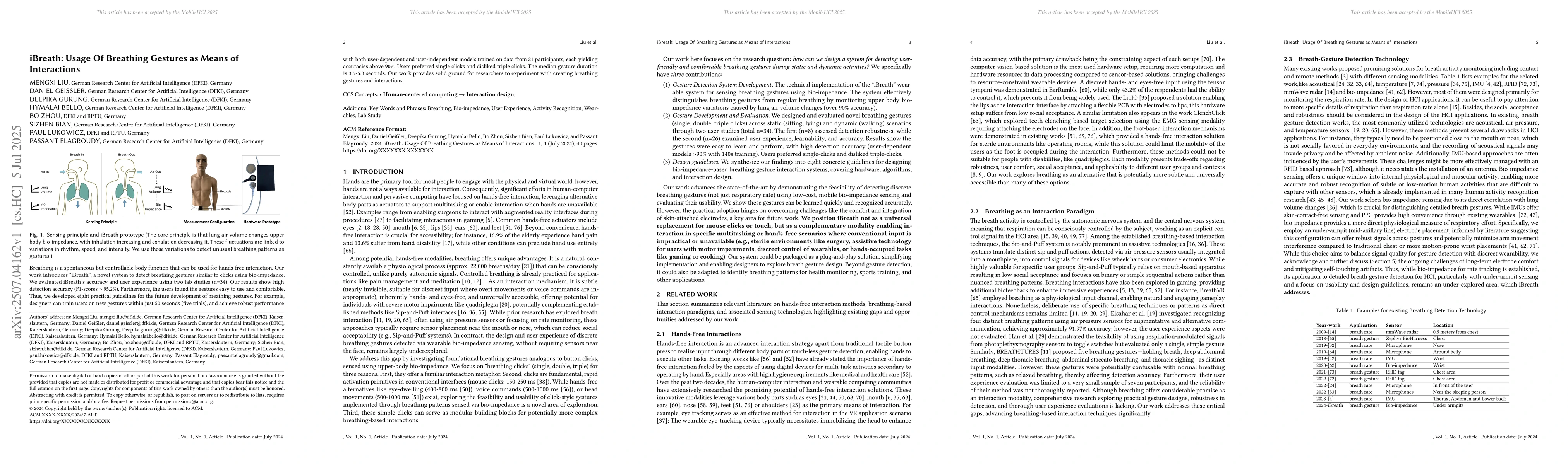 Breathing is a spontaneous but controllable body function that can be used for hands-free interaction. Our work introduces "iBreath", a novel system to detect breathing gestures similar to clicks using bio-impedance. We evaluated iBreath's accuracy and user experience using two lab studies (n=34). Our results show high detection accuracy (F1-scores > 95.2%). Furthermore, the users found the gestures easy to use and comfortable. Thus, we developed eight practical guidelines for the future development of breathing gestures. For example, designers can train users on new gestures within just 50 seconds (five trials), and achieve robust performance with both user-dependent and user-independent models trained on data from 21 participants, each yielding accuracies above 90%. Users preferred single clicks and disliked triple clicks. The median gesture duration is 3.5-5.3 seconds. Our work provides solid ground for researchers to experiment with creating breathing gestures and interactions.