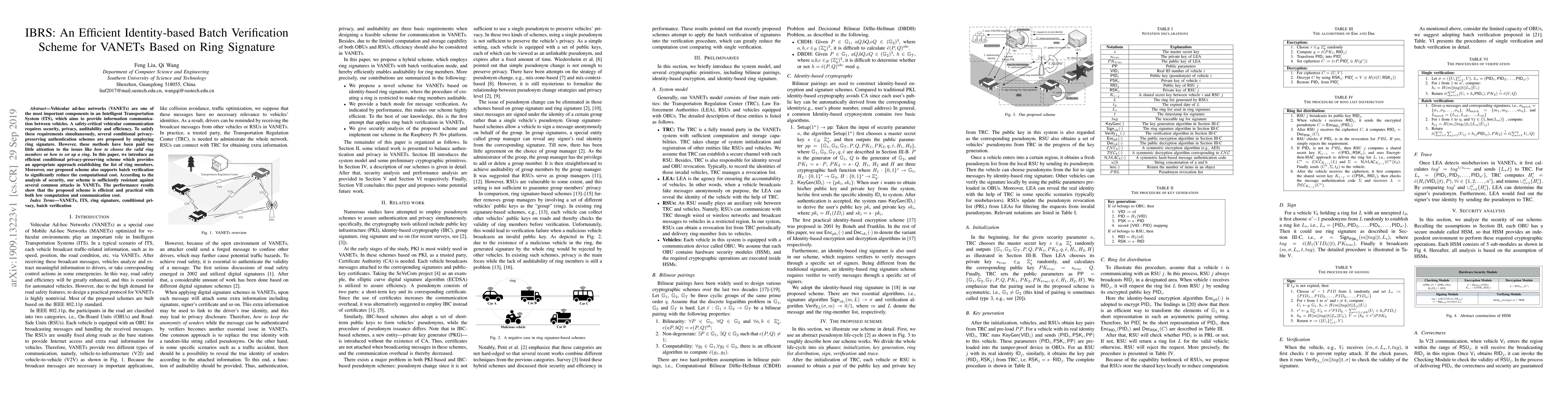 This paper introduces an efficient identity-based batch verification scheme for VANETs using ring signature, addressing the challenge of selecting valid ring members and setting up rings. The proposed method supports batch verification to reduce computational costs and demonstrates strong resistance against common attacks while maintaining low computation and communication costs.