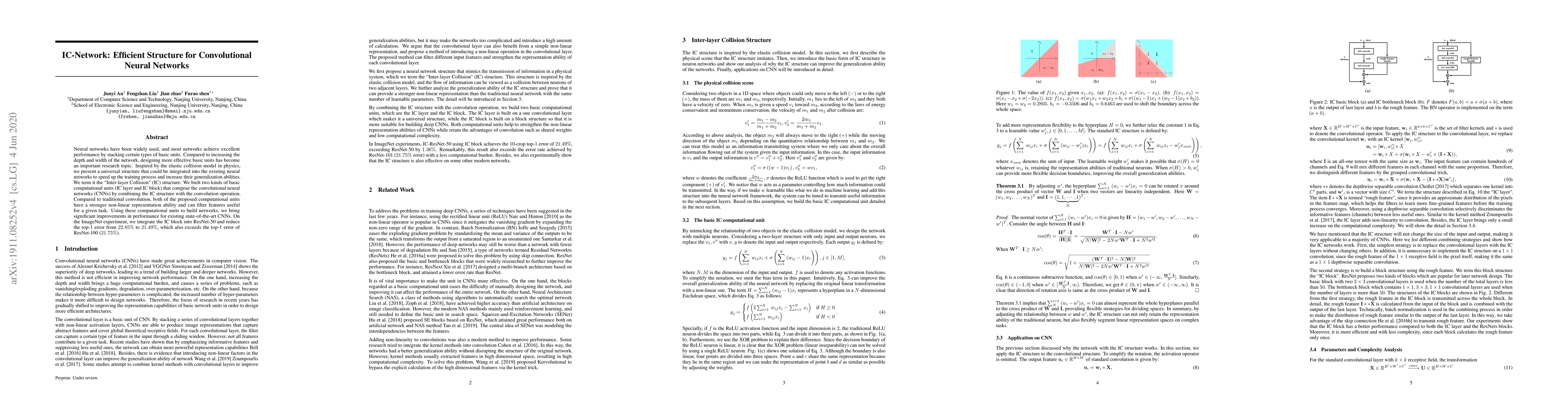 Researchers propose a new neural network structure called IC-Network that improves performance on image classification tasks by 2.36% compared to existing ResNet-50 models.