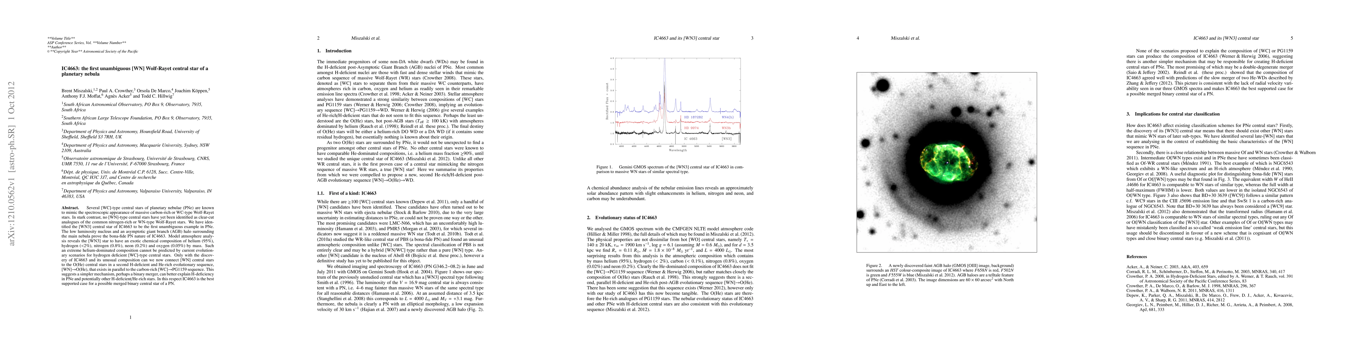 IC4663 hosts the first confirmed [WN] Wolf-Rayet central star of a planetary nebula, characterized by an unusual helium-dominated composition. This discovery suggests a new evolutionary path for [WN] stars, paralleling the carbon-rich [WC] sequence, and supports a binary merger mechanism for hydrogen deficiency in planetary nebulae.