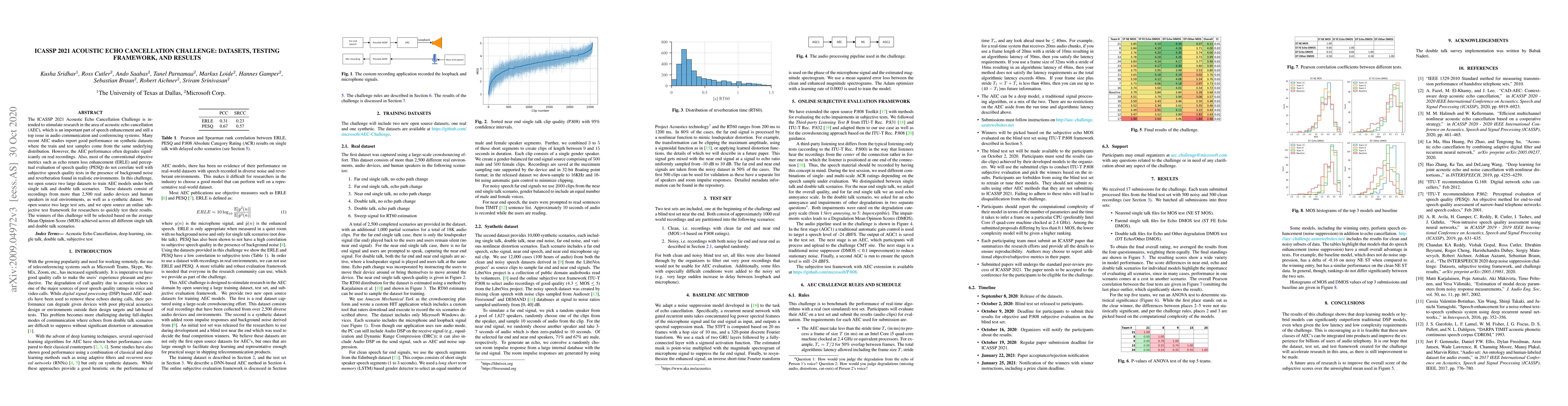 The ICASSP 2021 Acoustic Echo Cancellation Challenge aims to advance research in AEC by providing two large datasets and an online subjective test framework. The challenge seeks to improve AEC performance on real recordings, addressing the gap between synthetic and real-world data.