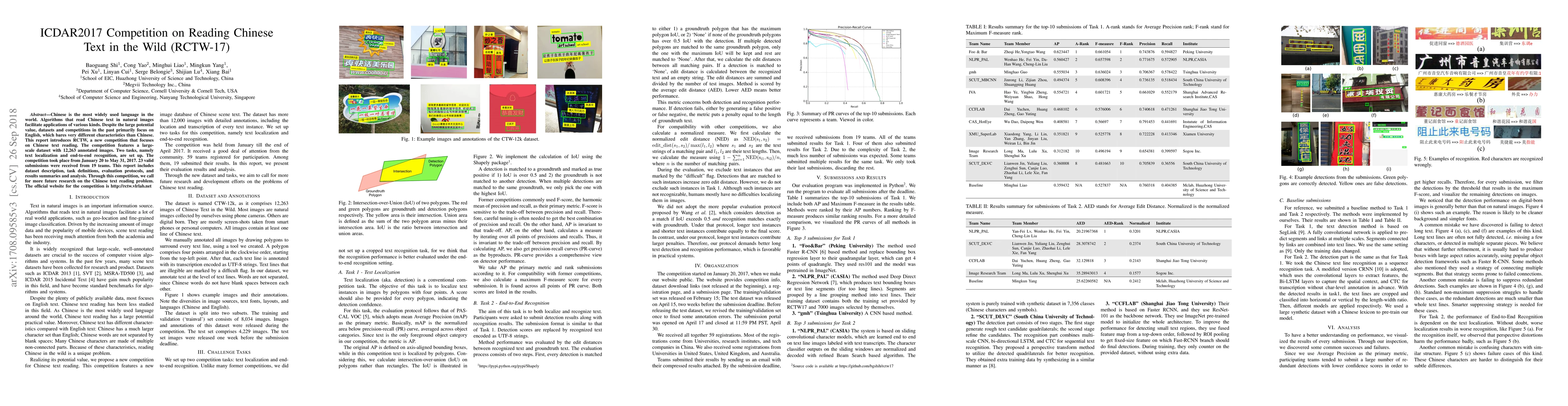 A new competition, RCTW-17, was held to improve Chinese text reading algorithms, featuring a large-scale dataset with 12,263 images and two tasks: text localization and end-to-end recognition.