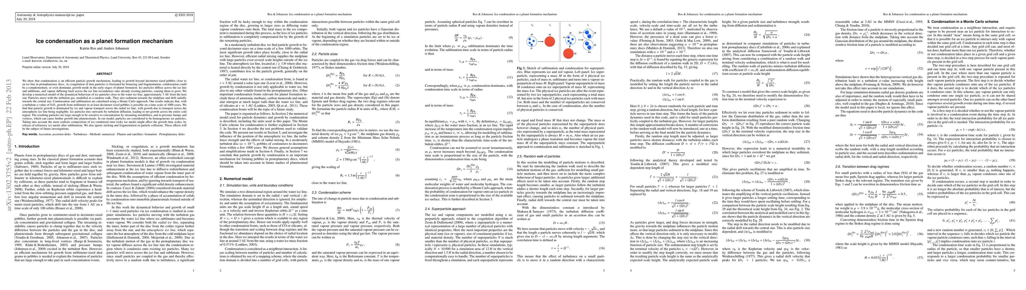 Condensation is an efficient growth mechanism for ice particles in protoplanetary discs, leading to decimeter-sized pebbles within 1000 years, and potentially influencing the formation of planetesimals.