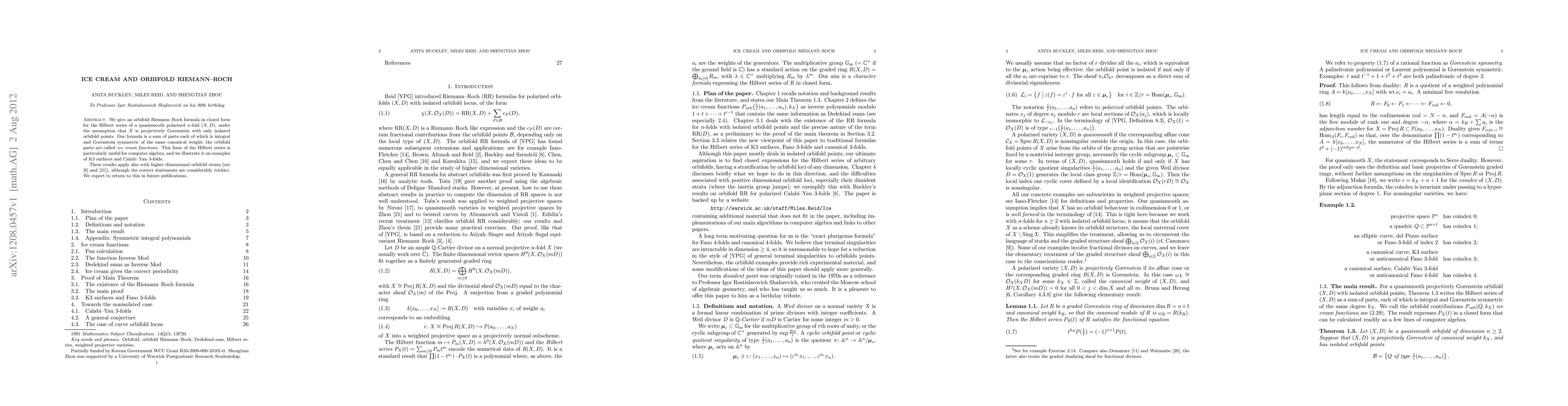 We give an orbifold Riemann-Roch formula in closed form for the Hilbert series of a quasismooth polarized n-fold X,D, under the assumption that X is projectively Gorenstein with only isolated orbifold points. Our formula is a sum of parts each of which is integral and Gorenstein symmetric of the same canonical weight; the orbifold parts are called "ice cream functions". This form of the Hilbert series is particularly useful for computer algebra, and we illustrate it on examples of K3 surfaces and Calabi-Yau 3-folds. These results apply also with higher dimensional orbifold strata (see [A. Buckley and B. Szendroi, Orbifold Riemann-Roch for 3-folds with an application to Calabi-Yau geometry, J. Algebraic Geometry 14 (2005) 601--622] and [Shengtian Zhou, Orbifold Riemann-Roch and Hilbert series, University of Warwick PhD thesis, March 2011, 91+vii pp.], although the correct statements are considerably trickier. We expect to return to this in future publications.